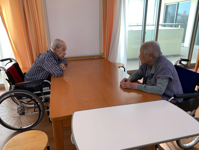 リビングのテーブルで、会話をなさっております。。