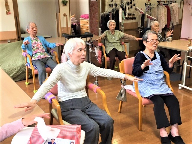 グループホームみんなの家・横浜三保2では、日々、ラジオ体操・ALSOK体操・NoA体操・ごぼう体操と体を動かして頂いてます。