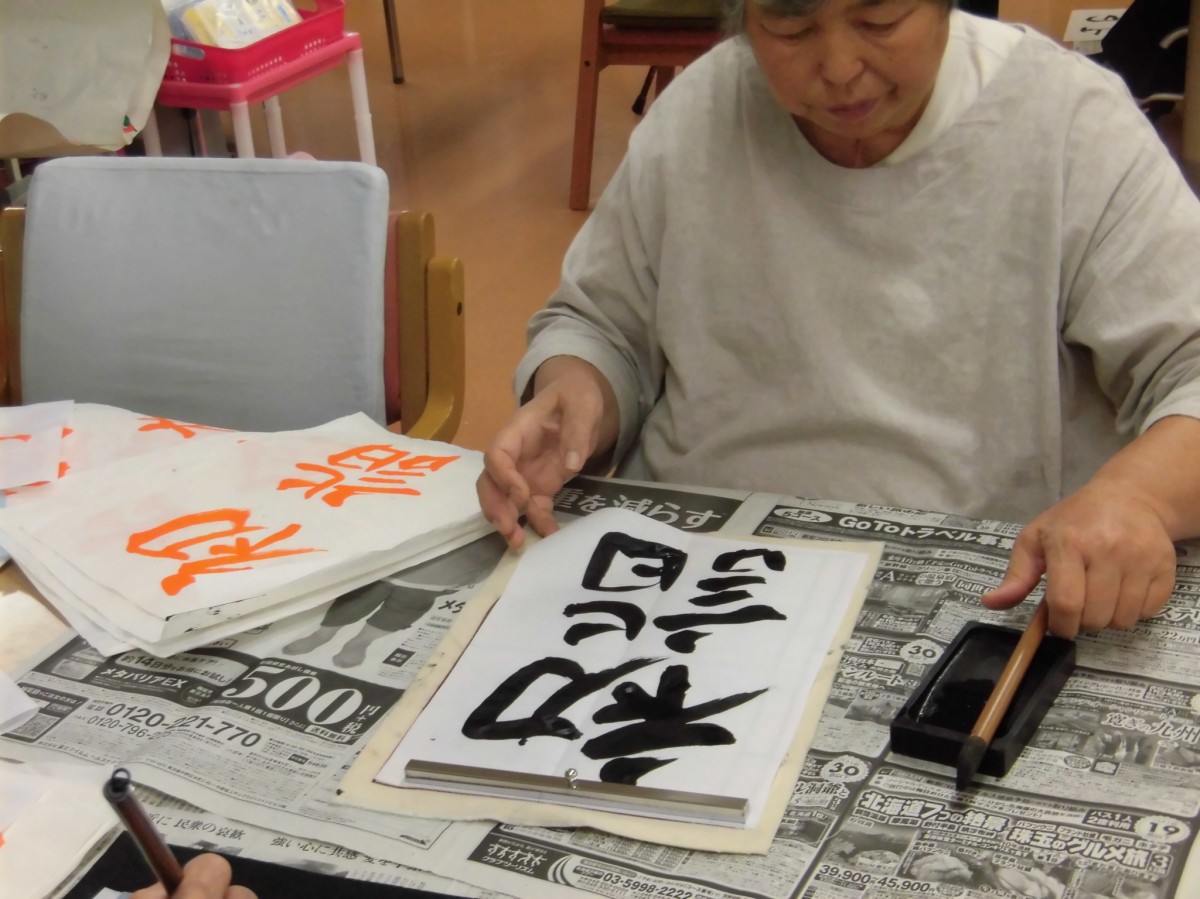 本日は「書道」の方を行いましたー。もうミッチリと皆様開始する前から気合十分な感じで参加されてましたよ♪