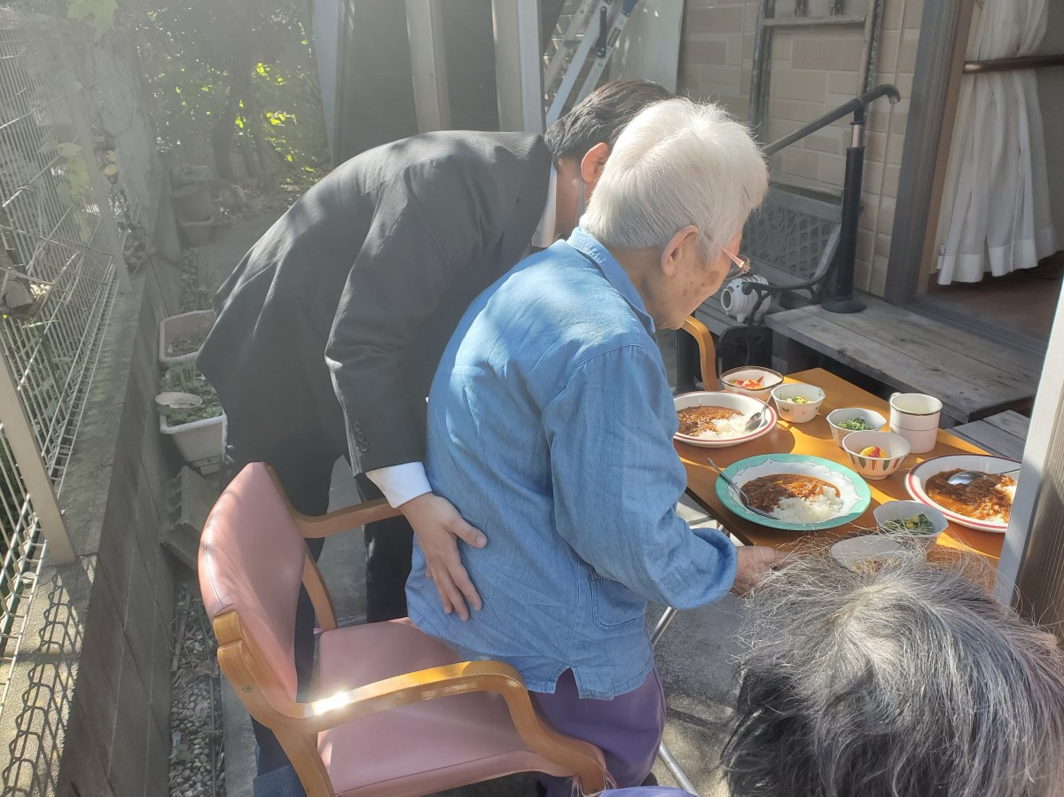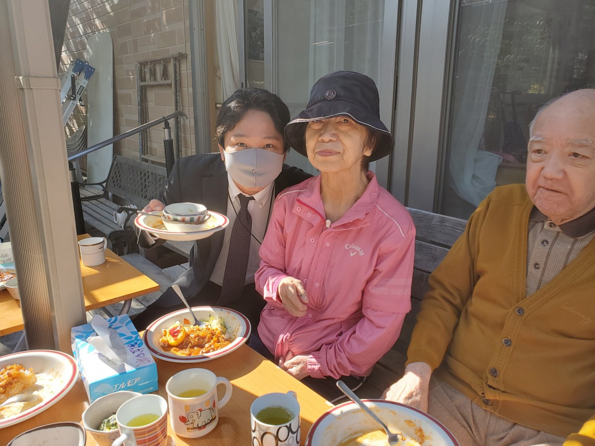 日溜まりの中はあたたかく、さわやかな天気の中、楽しい食事会でした。