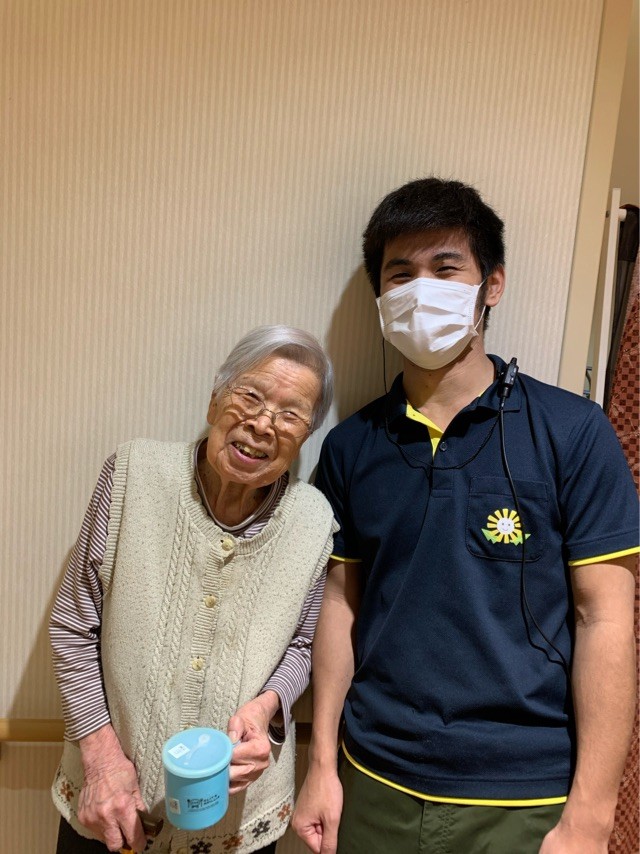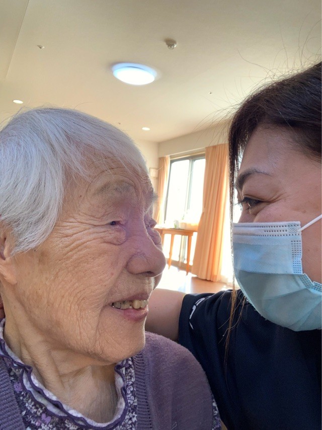 さて、今日は、入居者様とお話しているところをパシャっとやってみました。。