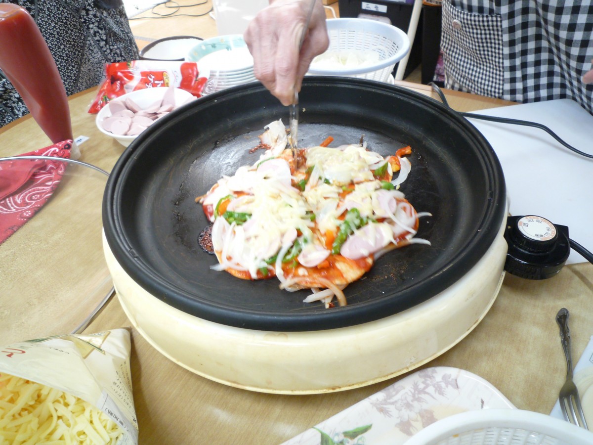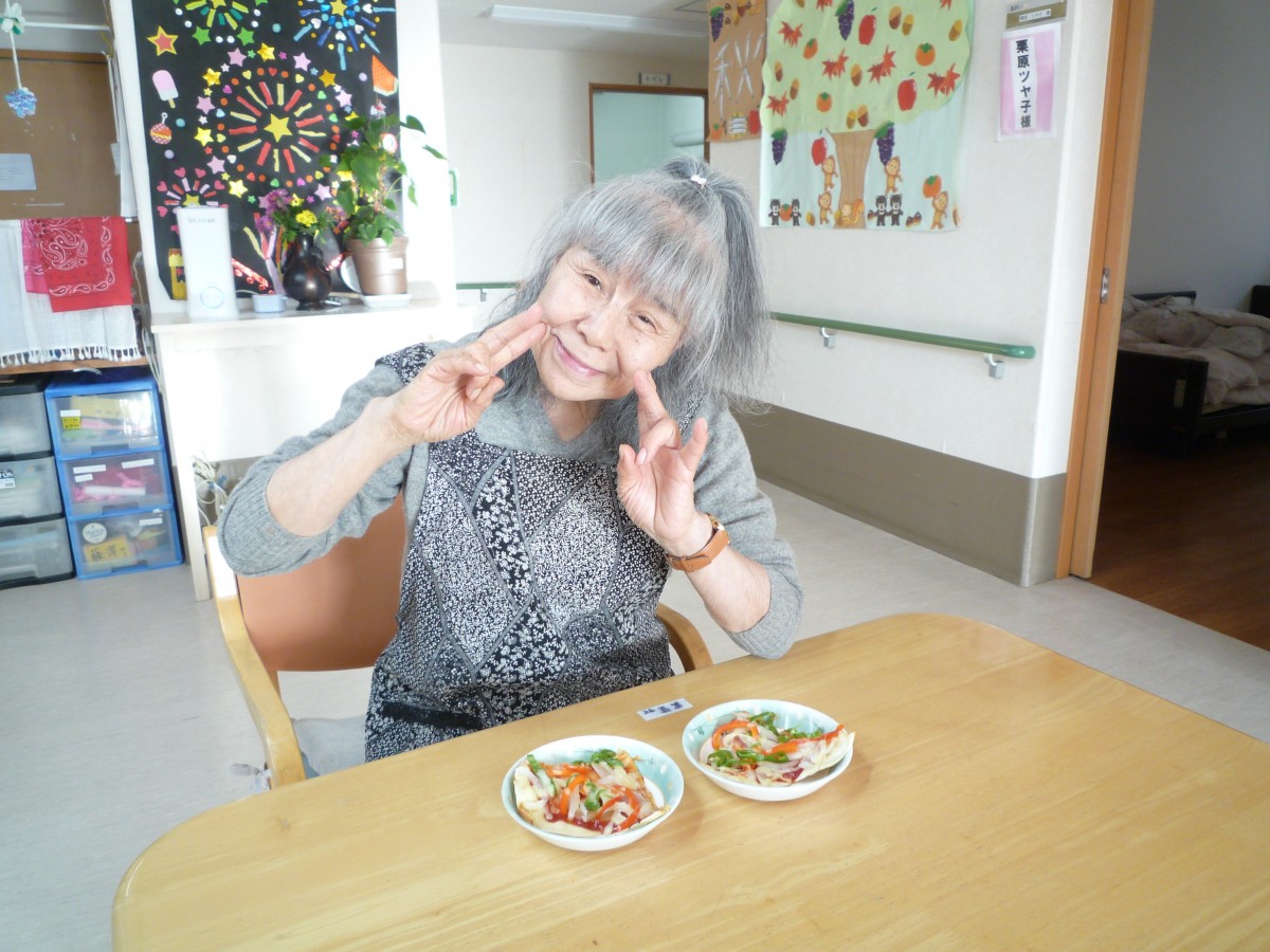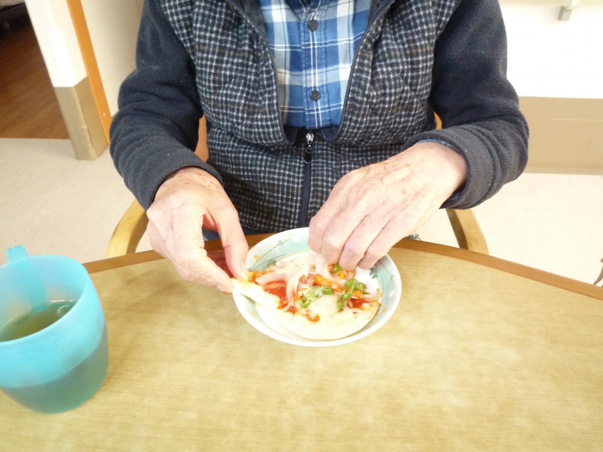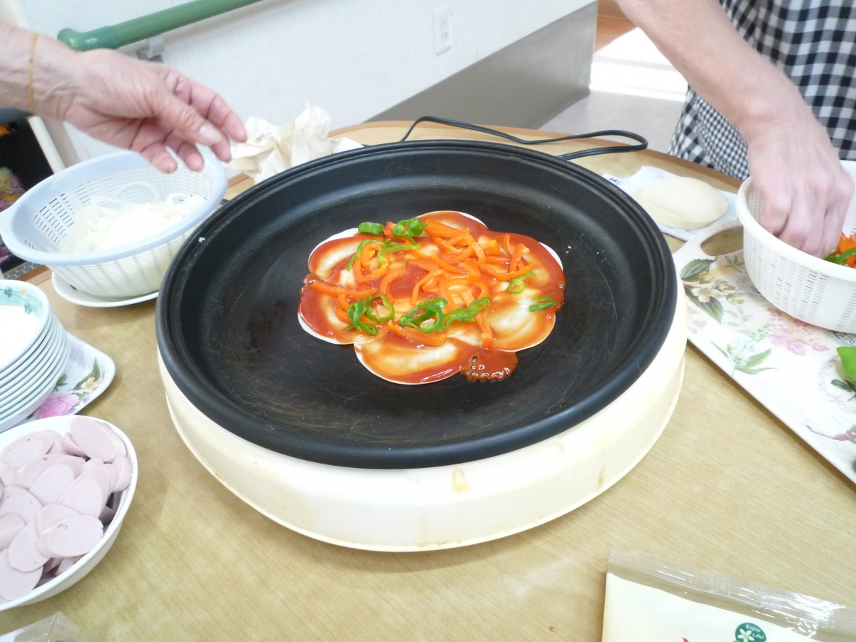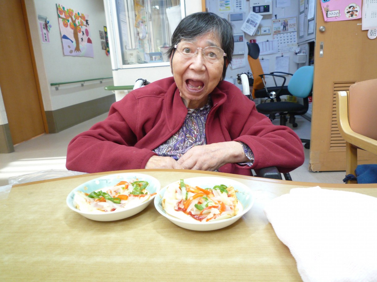 こんにちは!グループホームみんなの家南中野です!1階では、男性の方からピザが食べたいと、ピザのリクエストがありました(≧▽≦)