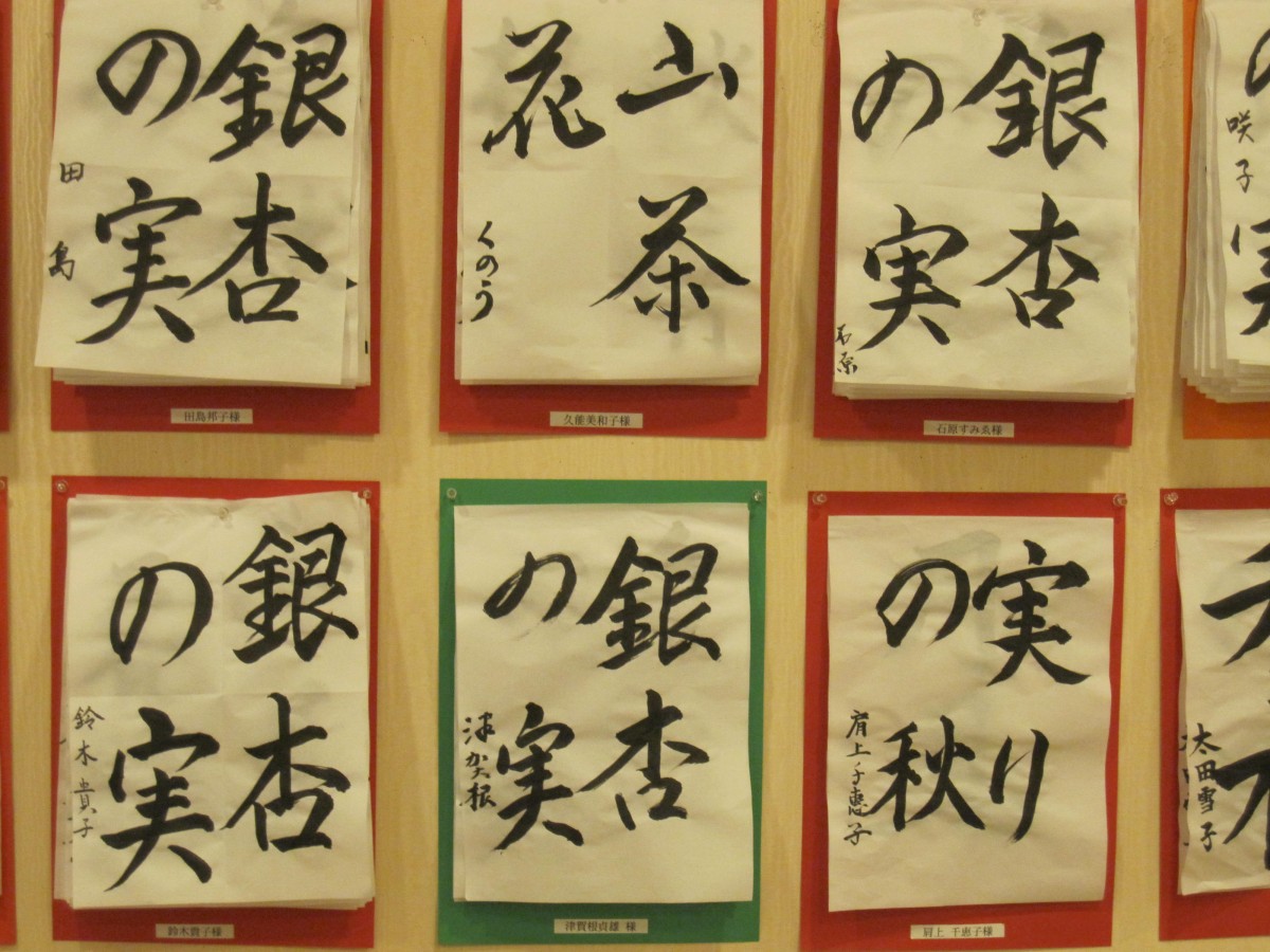 土曜の午後からの書道の会は、ゆっくりと行書を楽しんでいただいています。