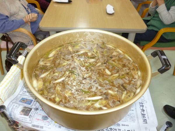 たっぷりの里芋に、舞茸・しめじ・ごぼう・長ネギ・牛肉を入れて、ちょっと甘めの”お醤油味”で召し上がっていただきました!!