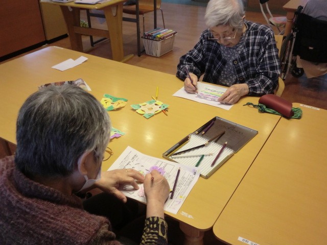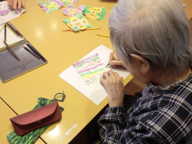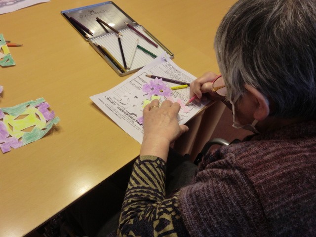 今日は、ホールの壁や廊下に装飾する切り絵を皆さんで作ってもらいました♪