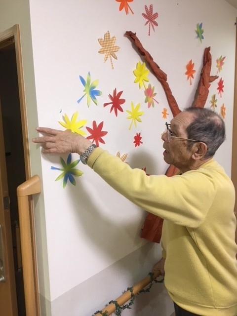 グループホーム みんなの家・川崎新百合ヶ丘です。 利用者様と紅葉のもみじを作り、壁に貼ってみました(^_-)-☆ 今日も皆さまお元気に過ごされています!
