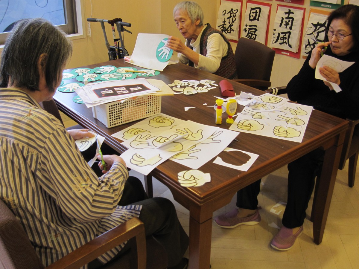 さすが!アミカヴィラ稲毛の手芸クラブ‼皆さん手早くハサミを動かし作っていただきました。