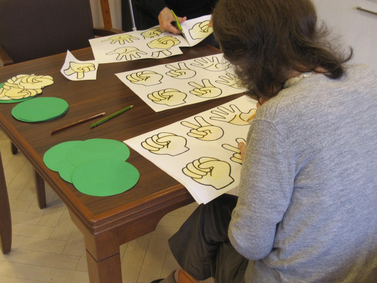 水曜日の手芸クラブは12月15日の感謝祭に向けて「ジャンケン大会」用のカード作りをお手伝いしていただきました。