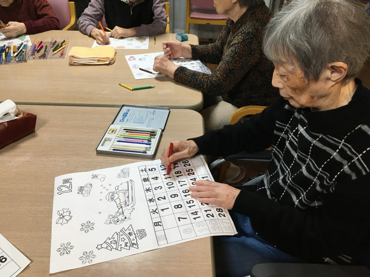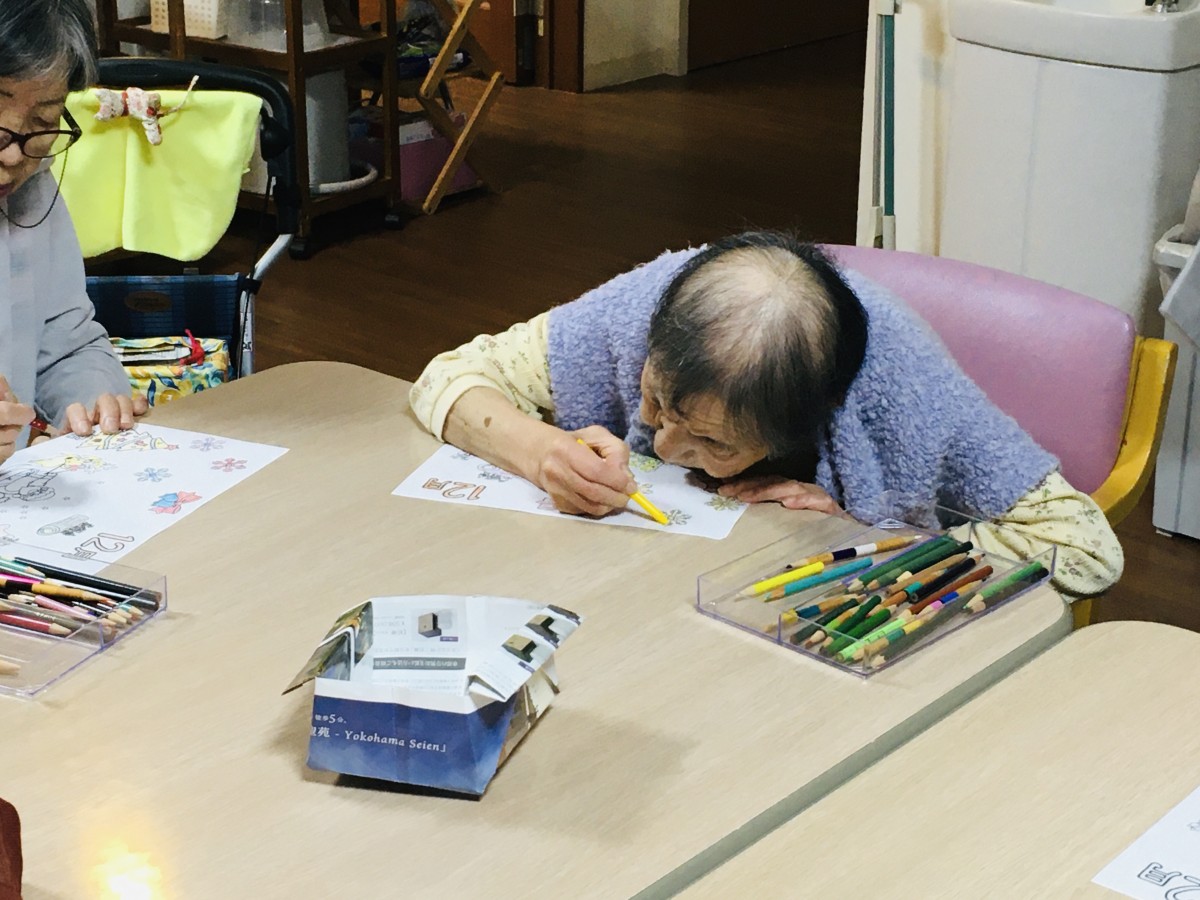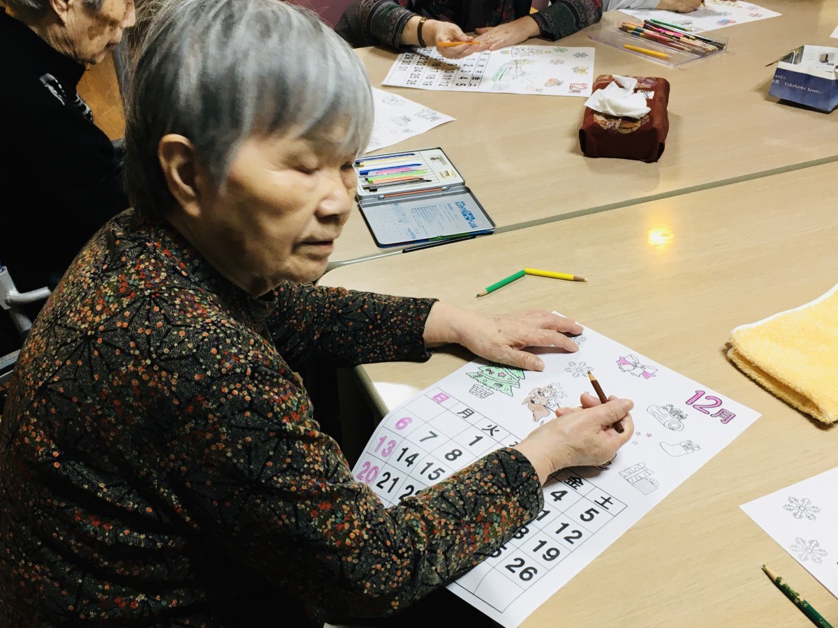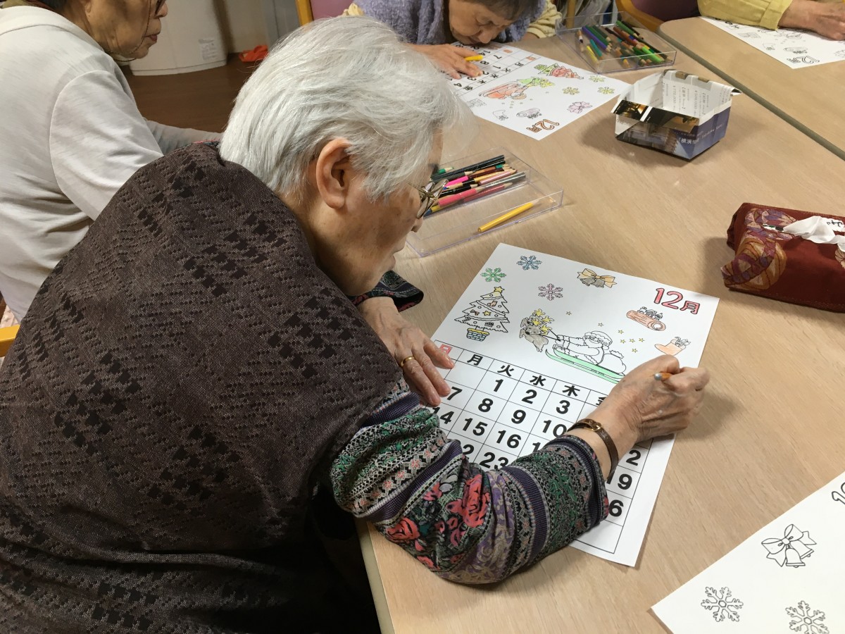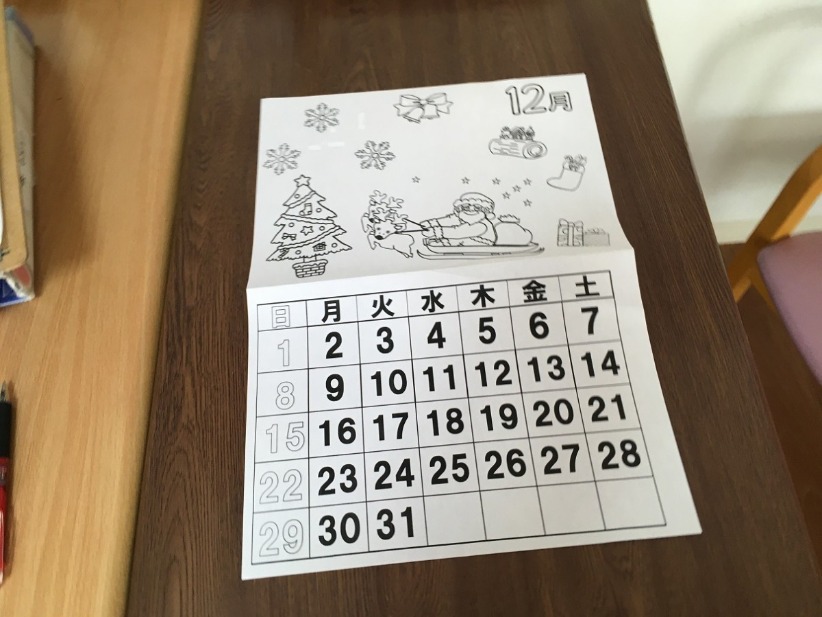 月が終わりにつれ、レクの一貫として来月のカレンダー作りを行っています。