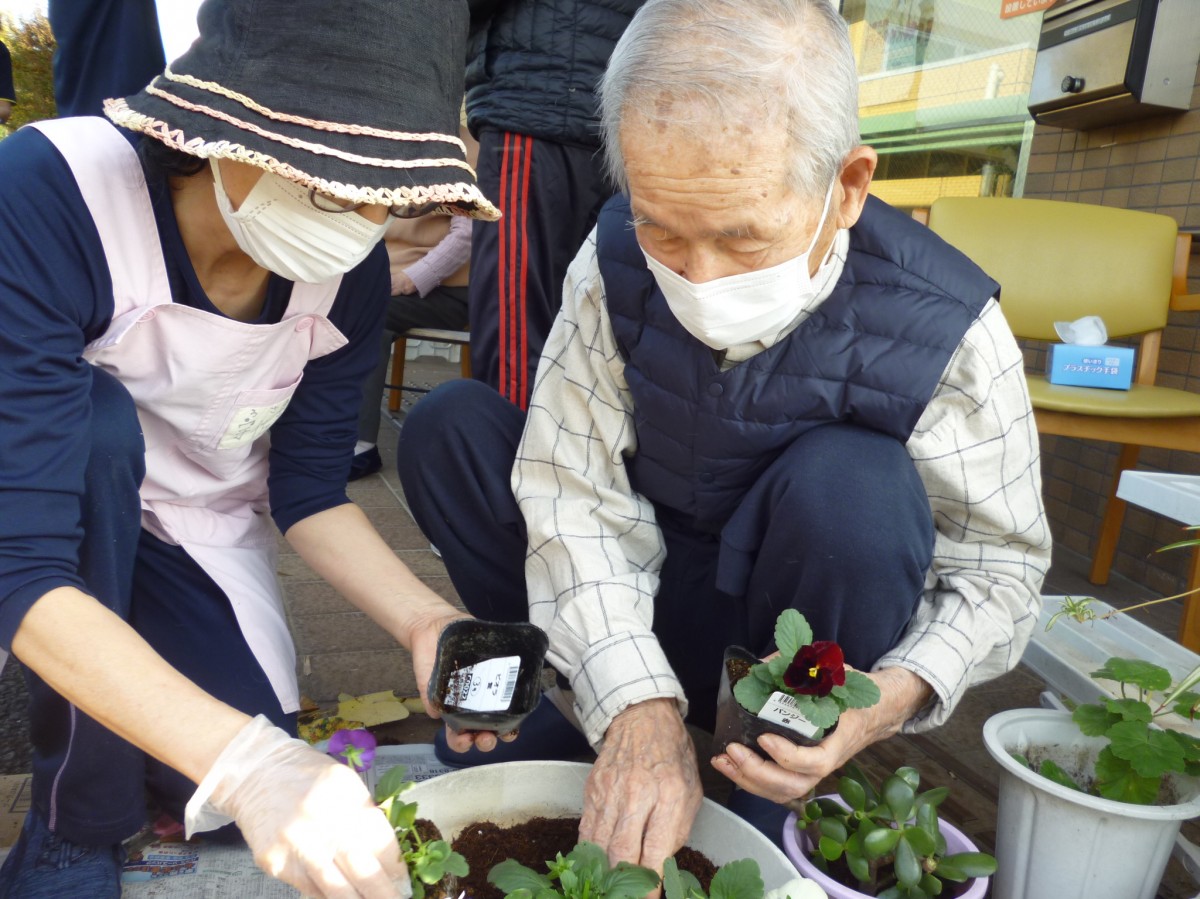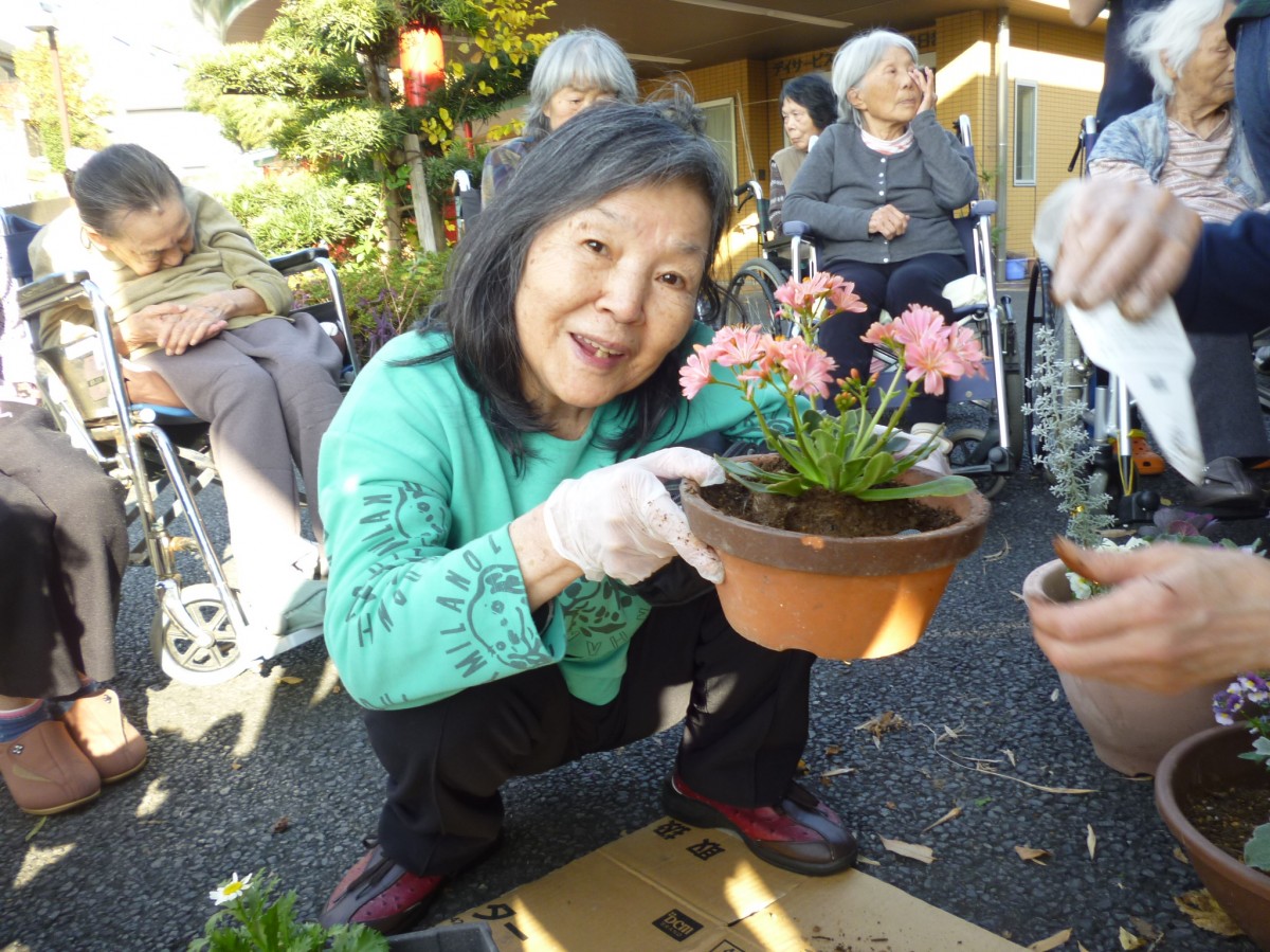 今日は中庭でお花を植えました
