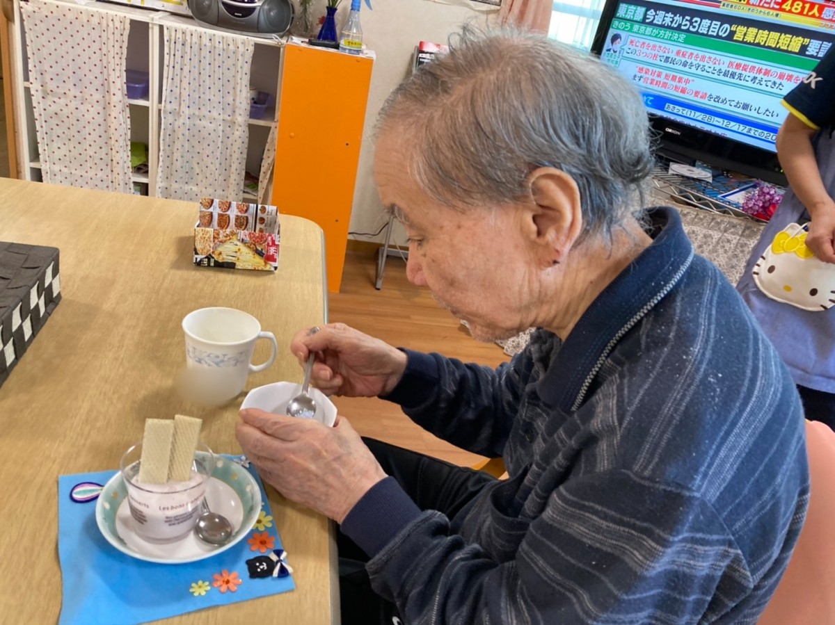 ●○グループホームみんなの家・川崎久地「久地喫茶~紫芋のムース抹茶ウエハース添え~」○●