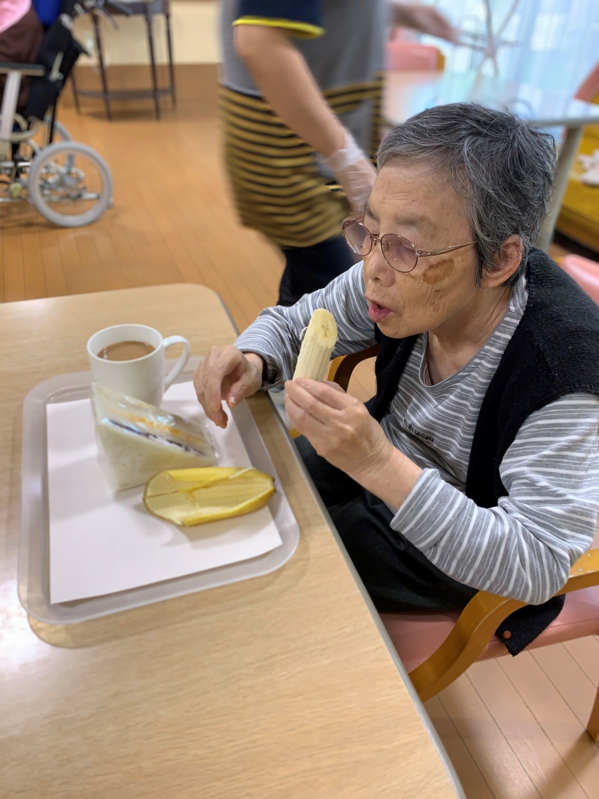地元の有名店から取り寄せたサンドイッチ(^o^)丿とフル―ツの王様のバナナ登場です(´_ゝ`)