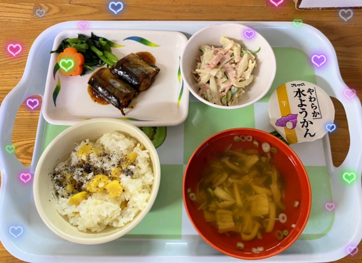 さて今日は11月は一応『秋』とのことで秋の味覚の食事が出ましたのでご紹介します♪