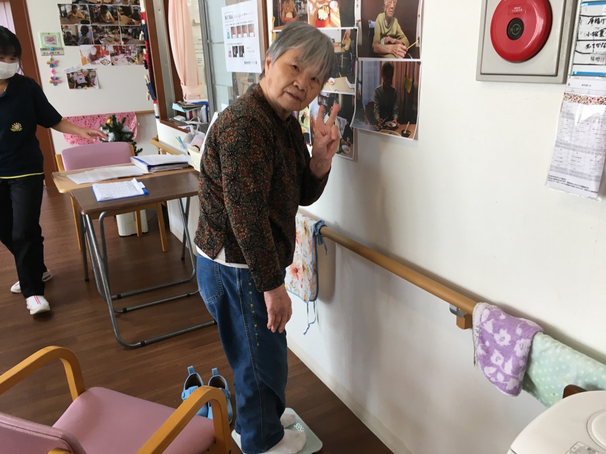 車椅子の方用の体重計を本部の方が手作りで作って下さいました。