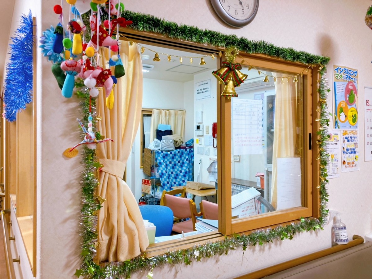 可愛いサンタさん、プレゼント、もみの木を横に廊下をすぎると…