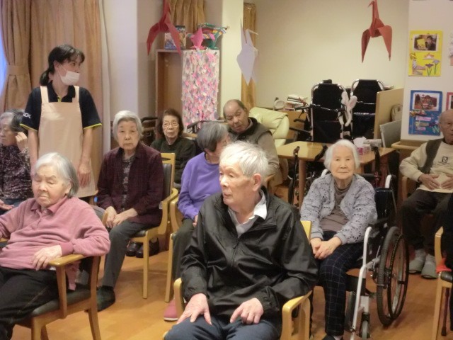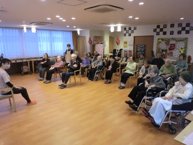 身体と声を合わせての動きに若干戸惑う利用者様もいましたが、楽しみながら笑顔で参加しています(^^♪