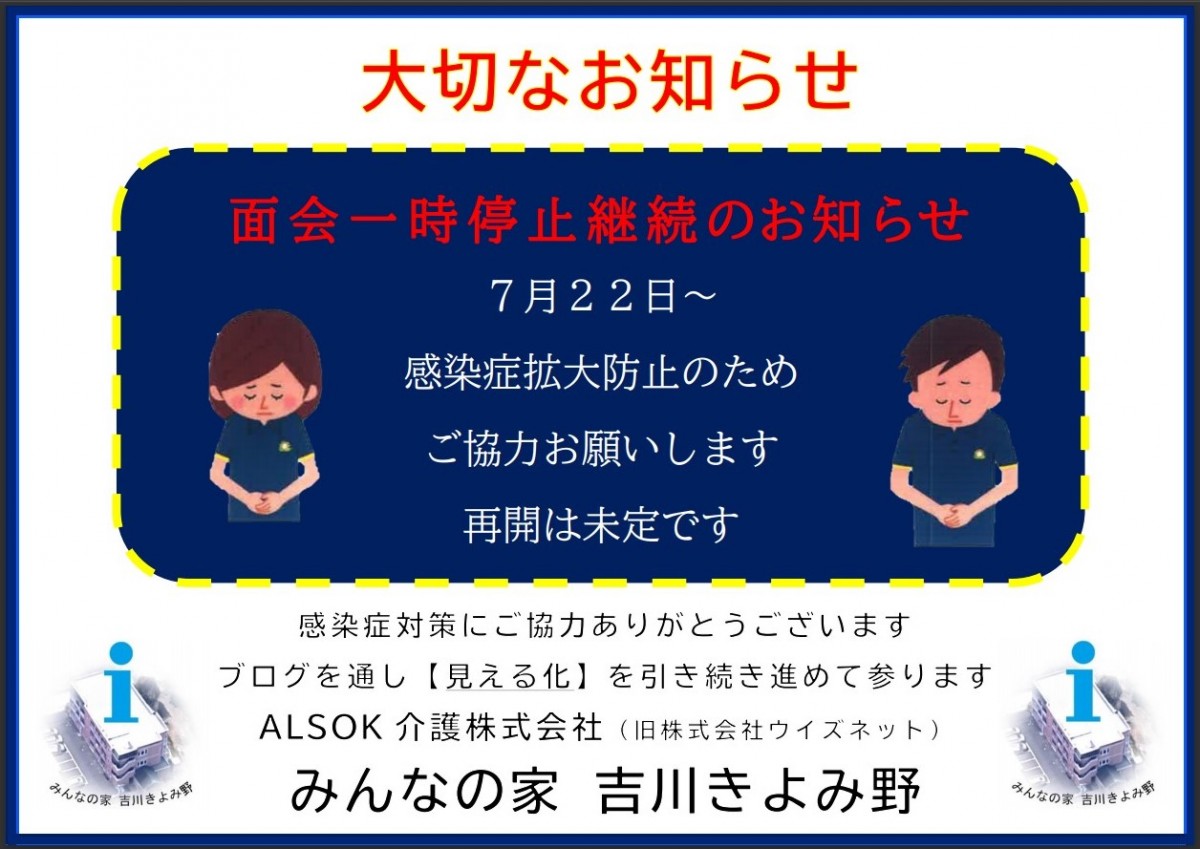 面会一時停止にご協力ありがとうございます。