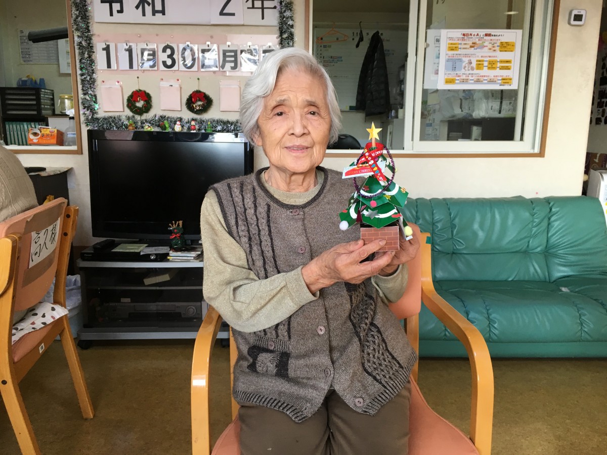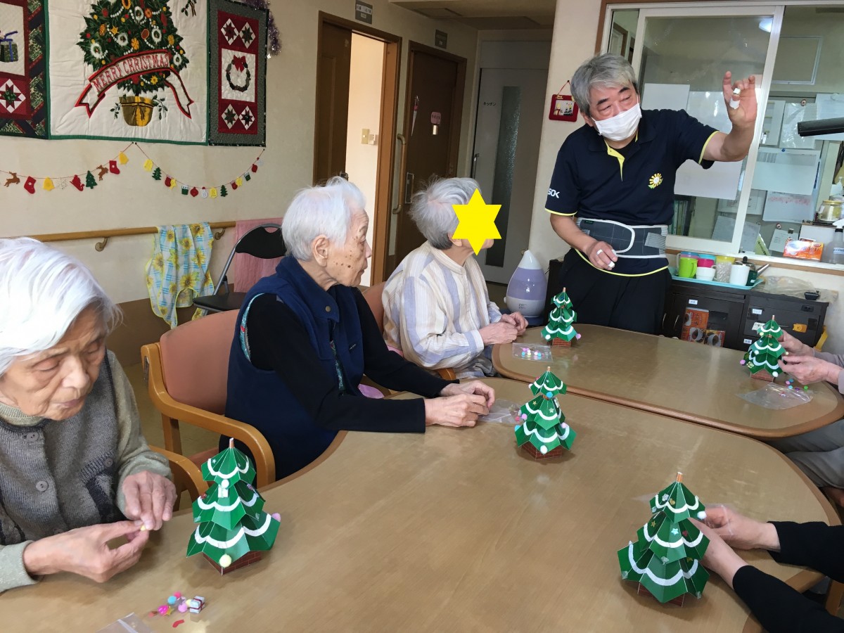 ツリーの形作りは、職員が行い、皆さんには、ツリーの飾り付けを