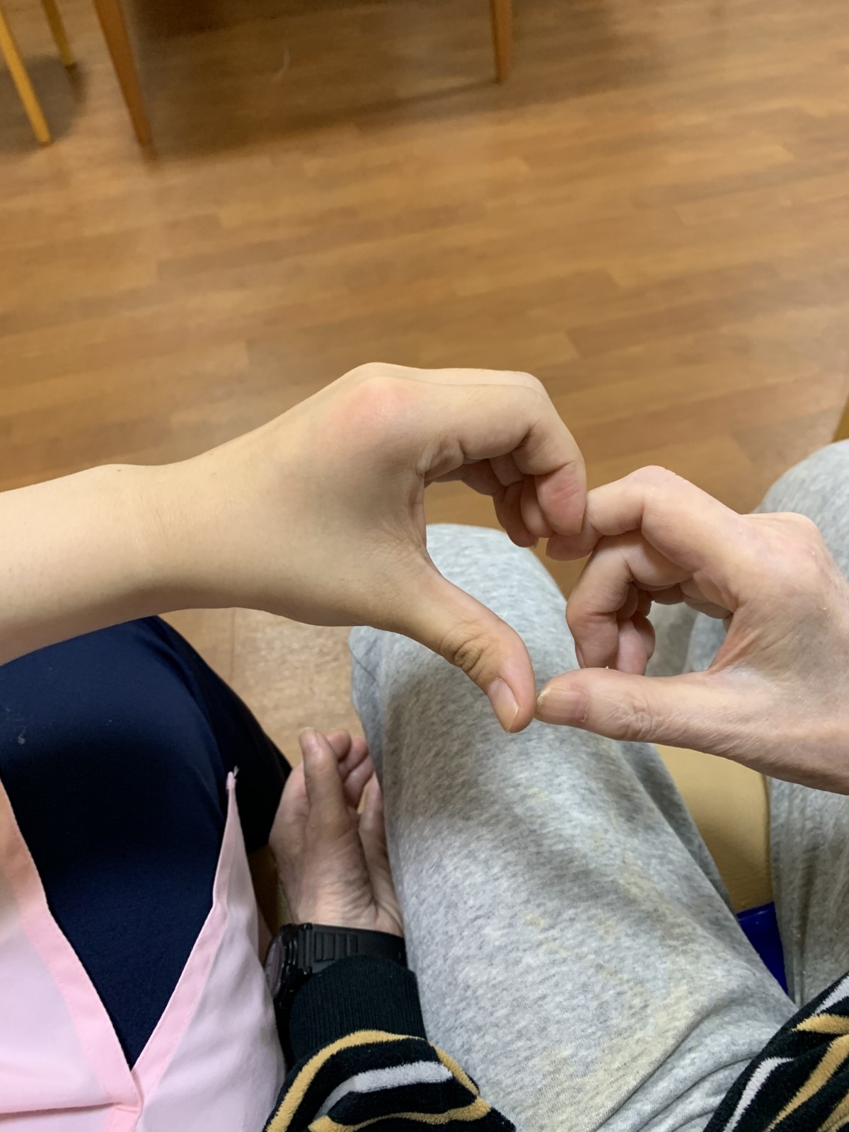 片手指ハートです!指のここ!ハートになってませんか?!なってますよね!ね!