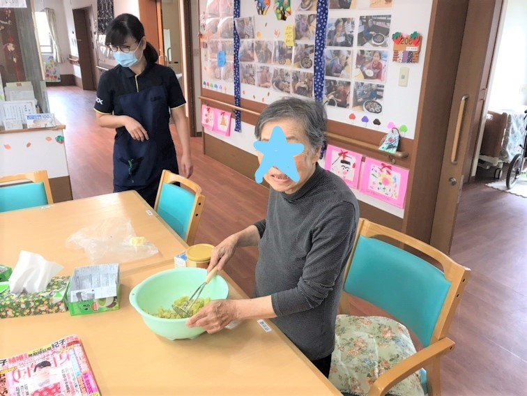 グループホームみんなの家・殿山北糀谷ではご利用者様に手伝ってもらいながらおやつ作りを行なっています。