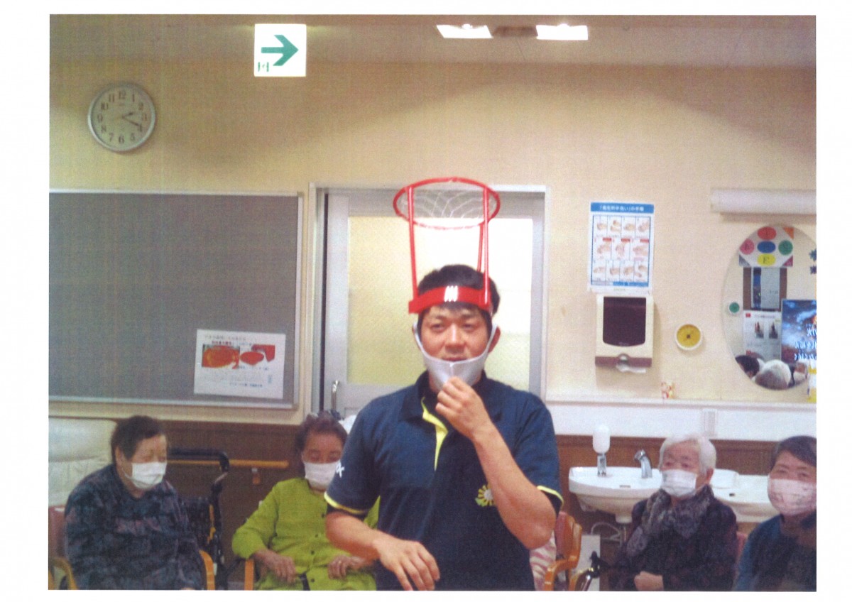 12月5日は“人間バスケット”を行いました。 高野職員の頭についているバスケットにたくさんボールを入れるゲームです!(^^)! 皆さま最初は遠慮していましたが、だんだんと強いボールが飛んできました☆ ボールが入ると、拍手がおこり大変盛り上がっていました(*^^)v デイサービスセンター遊・川越南大塚では毎日楽しいイベントをご用意しています☆ 是非皆さまもご参加ください♪