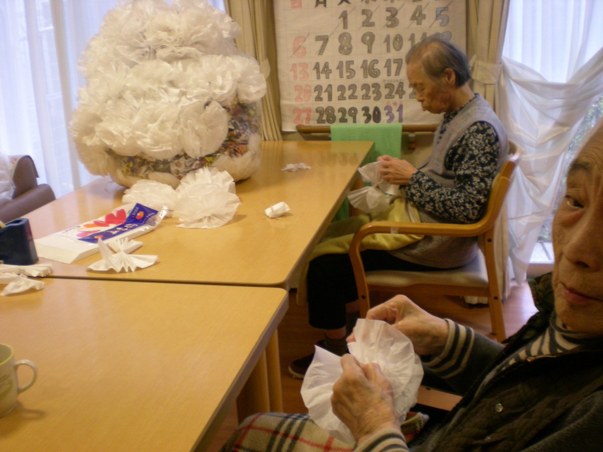 真剣にお花紙を広げられています!