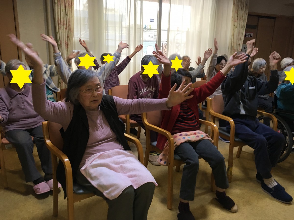 会話を交えながら、椅子に座って脳と脚の機能向上の簡単なトレーニングです。