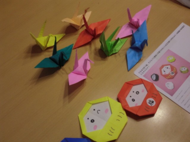 縁起物である達磨や鶴、門松にコマと正月を連想させるものを折り紙で作成します♪