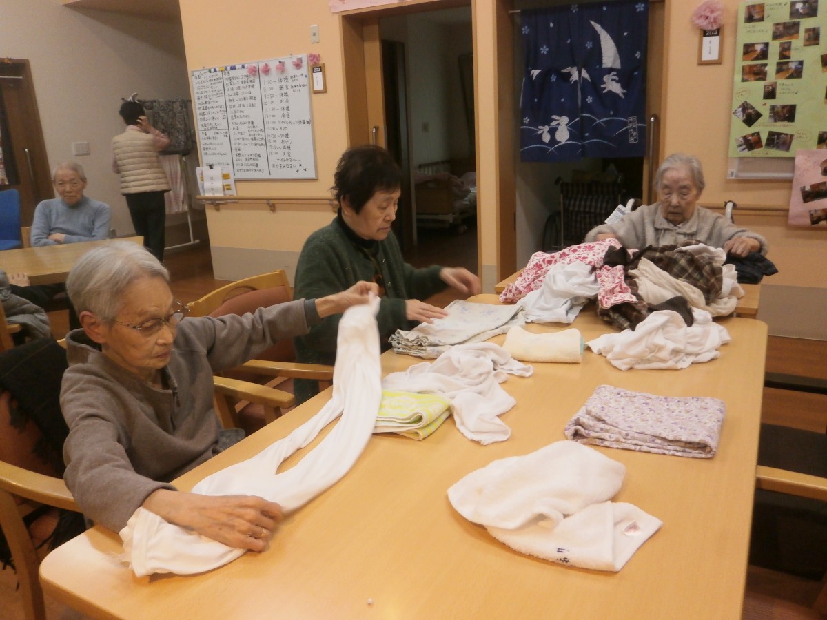 夕方は洗濯物をたたみましょう!今日、量が多いね(-_-;)