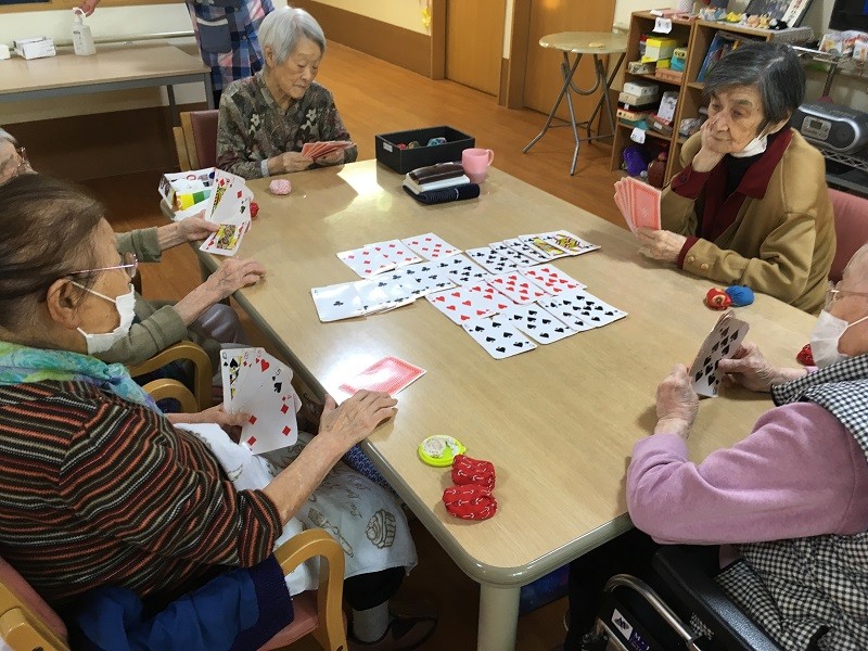 グループホームみんなの家 蕨 3階の皆様午後のひと時、7並べに夢中です。