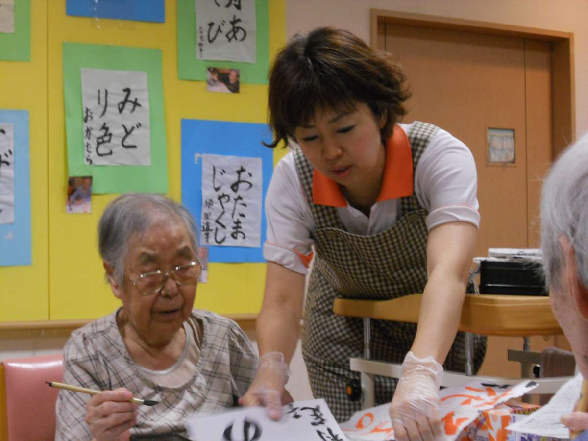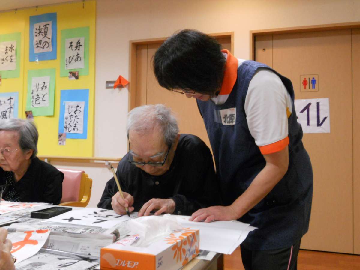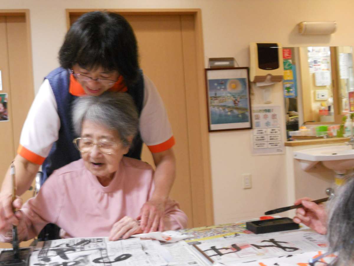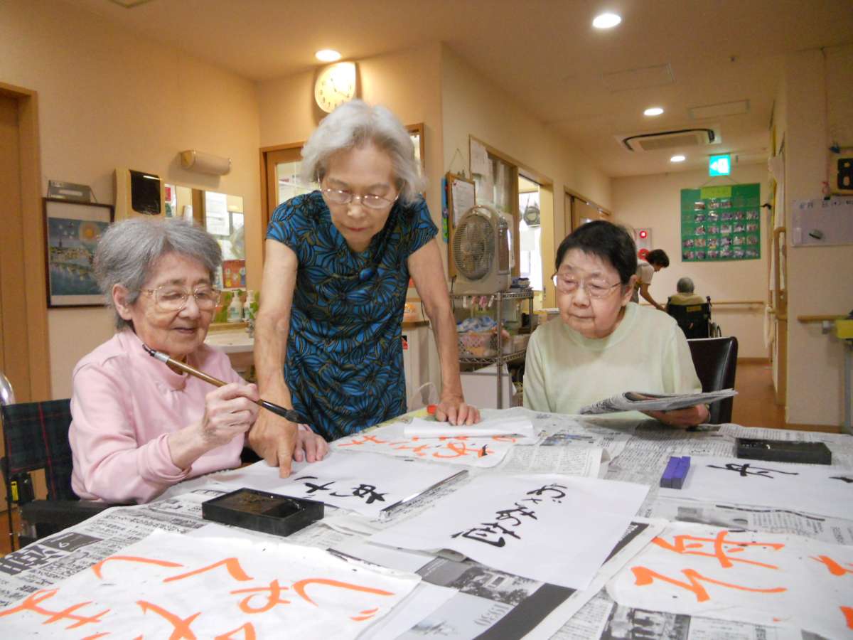 月2回、火曜日にホームにて開催している書道教室を紹介したいと思います。