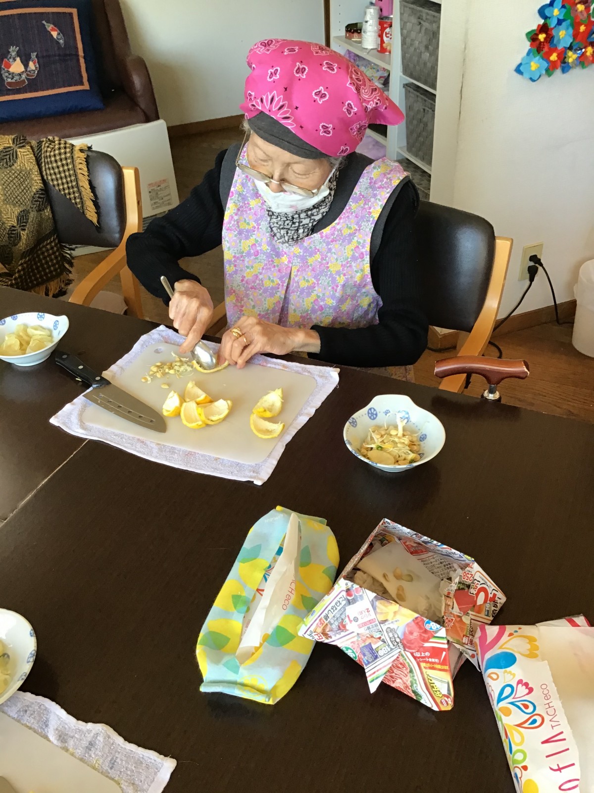 今日ご紹介するのは、デイサービスの玄関にたわわに実っている柚を使い
