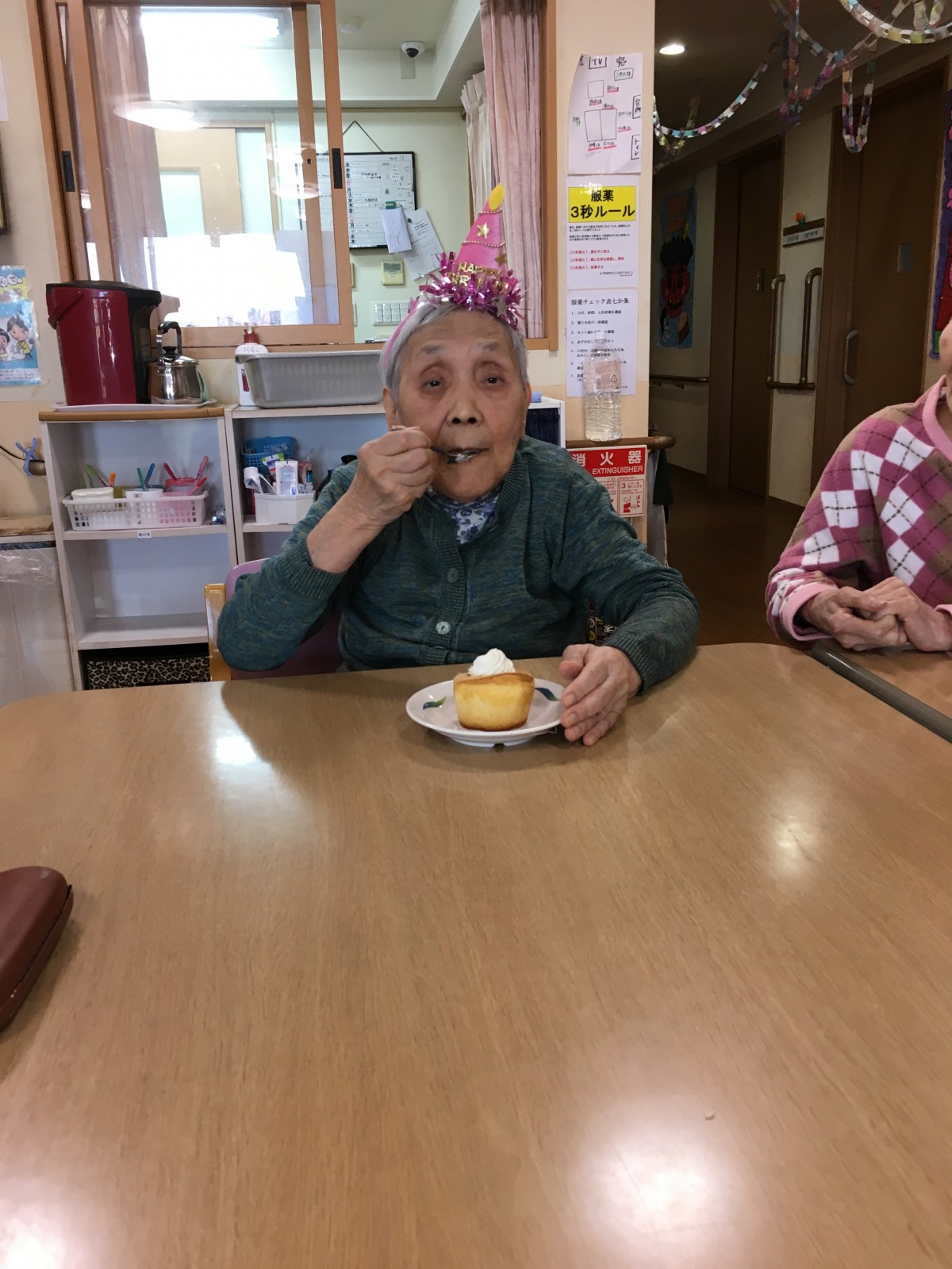先週、お誕生日を迎えたご入居者様のお祝いをみんなで行いました。