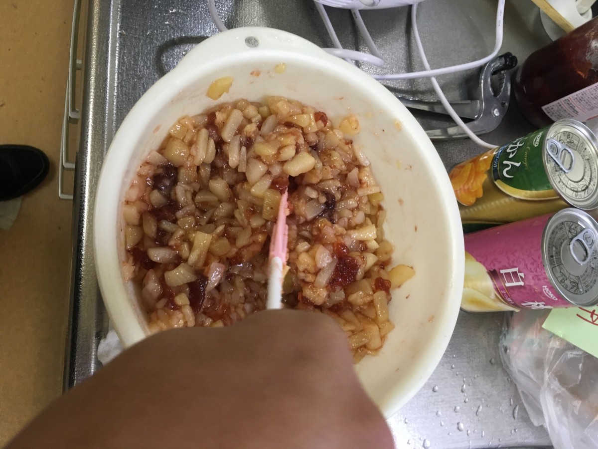 冷ましたものにイチゴジャムを混ぜます。