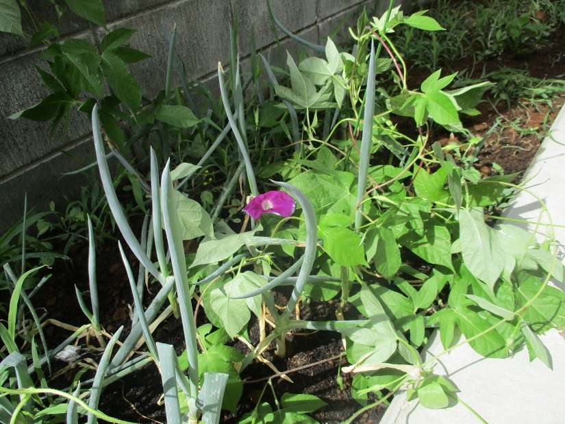 南瓜は花が咲き、8月に入り小松菜も植えました。