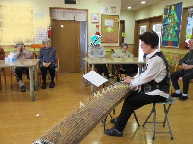 午前の職務を終え、楽器をセット、、、「何始まるの??」とみんなざわつき始めました\(◎o◎)/!お琴演奏会始まりです(*^_^*)