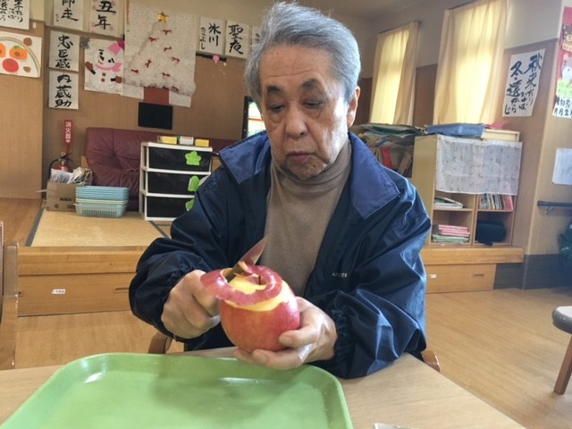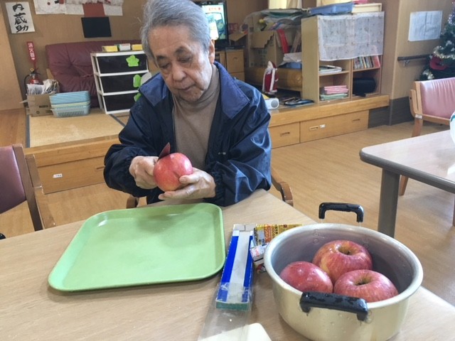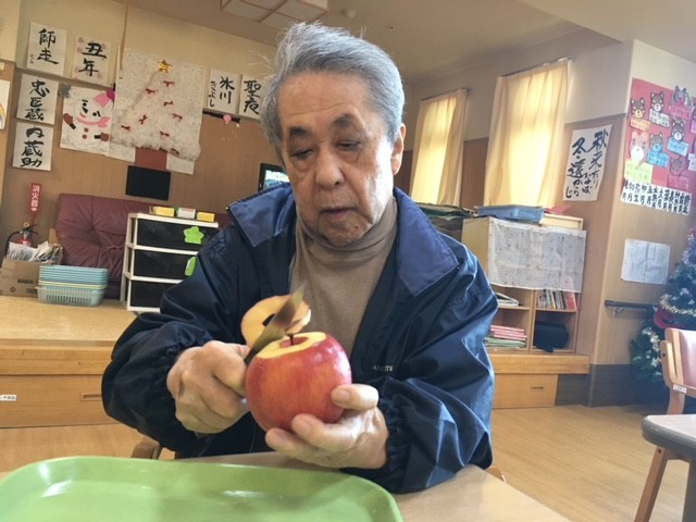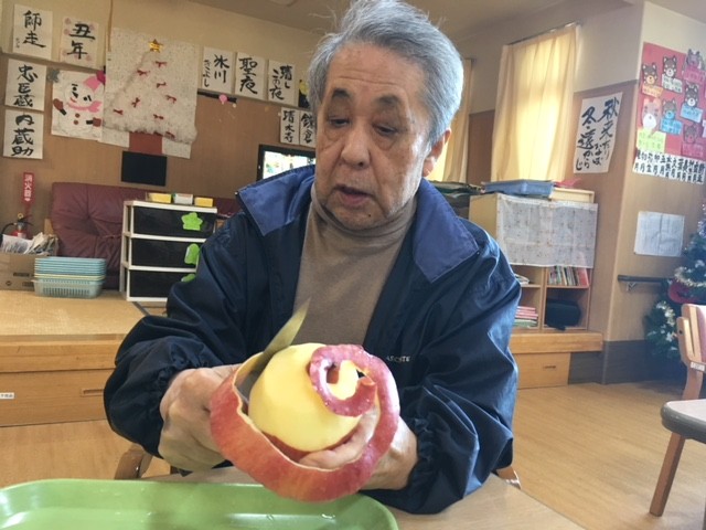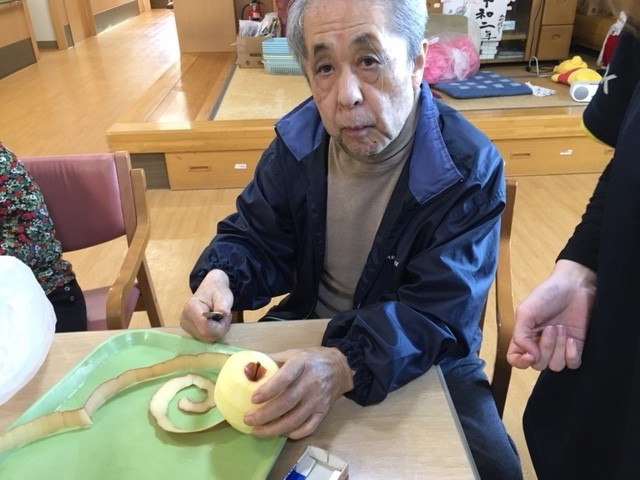 先日2Fのご利用者様が、リンゴの皮むきをして下さいました♬