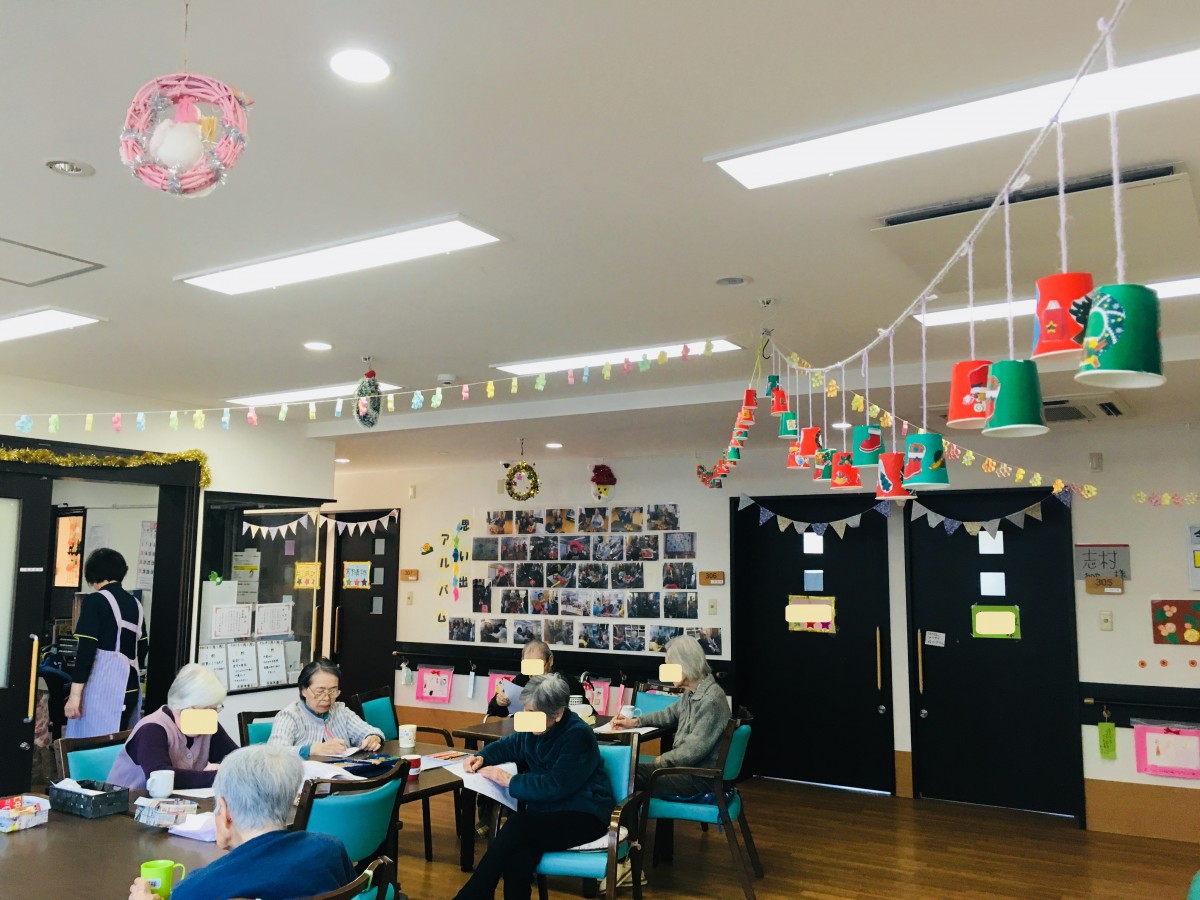 スタッフと利用者様の愛の共同作業(半ば強制的)である壁飾り!