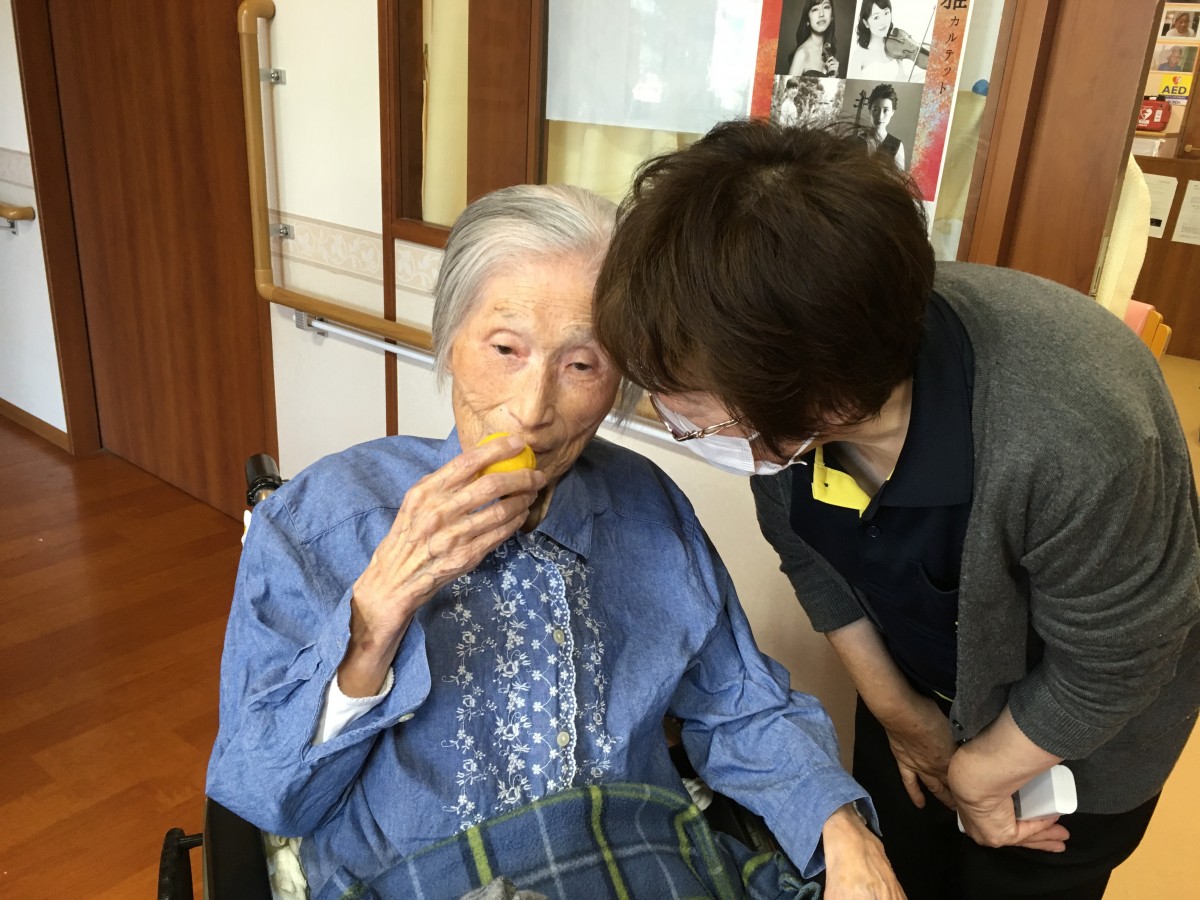 と尋ねると、持っていたゆずを鼻に近づけ