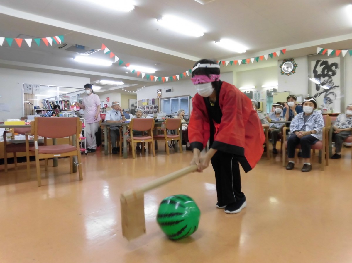 振り返ると、確かスイカ割りは見えない状況下なので皆様からのお声で誘導されていき、割ったという記憶が今も鮮明に残っています。