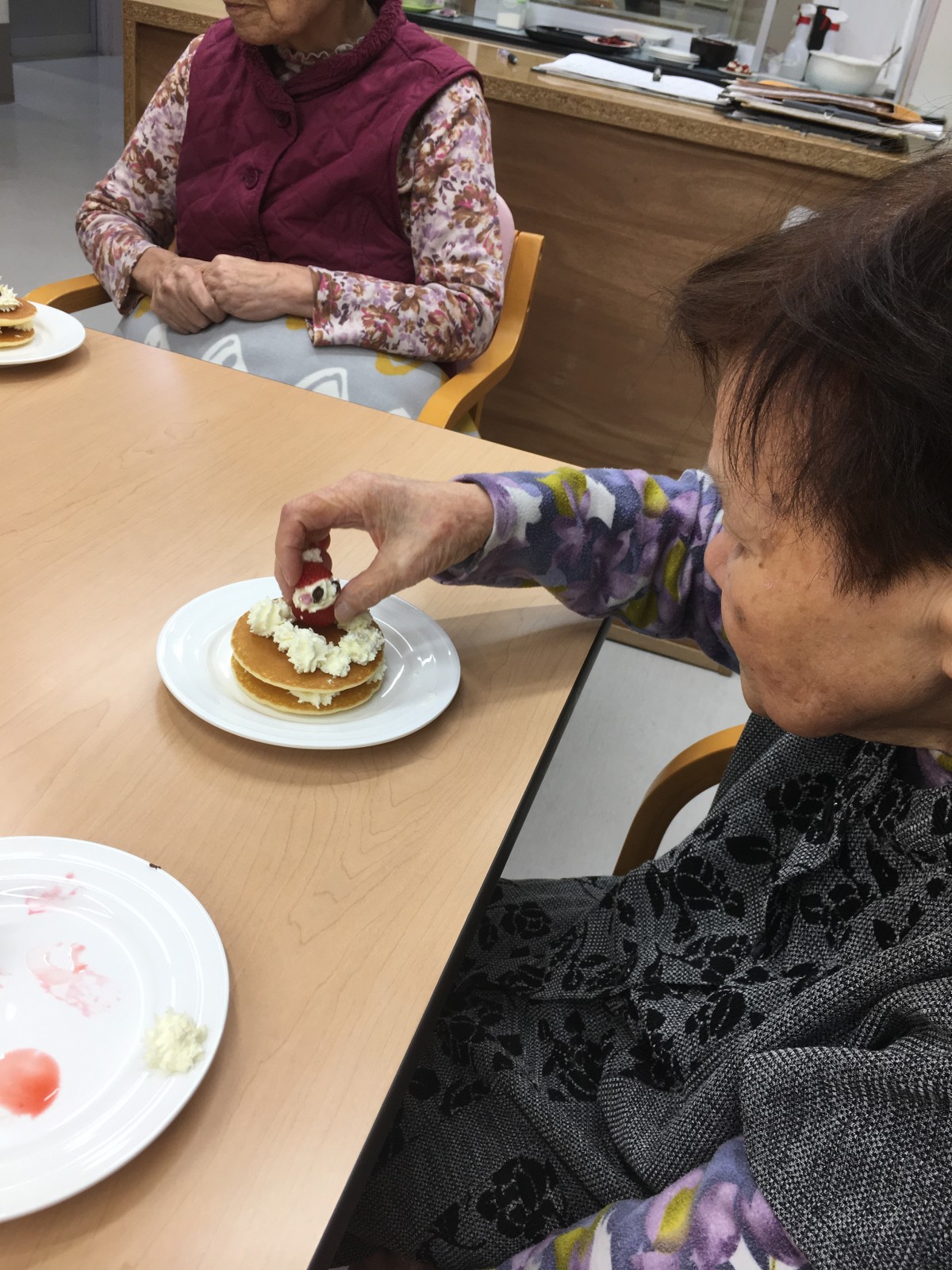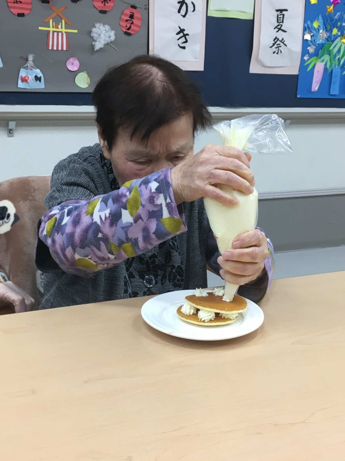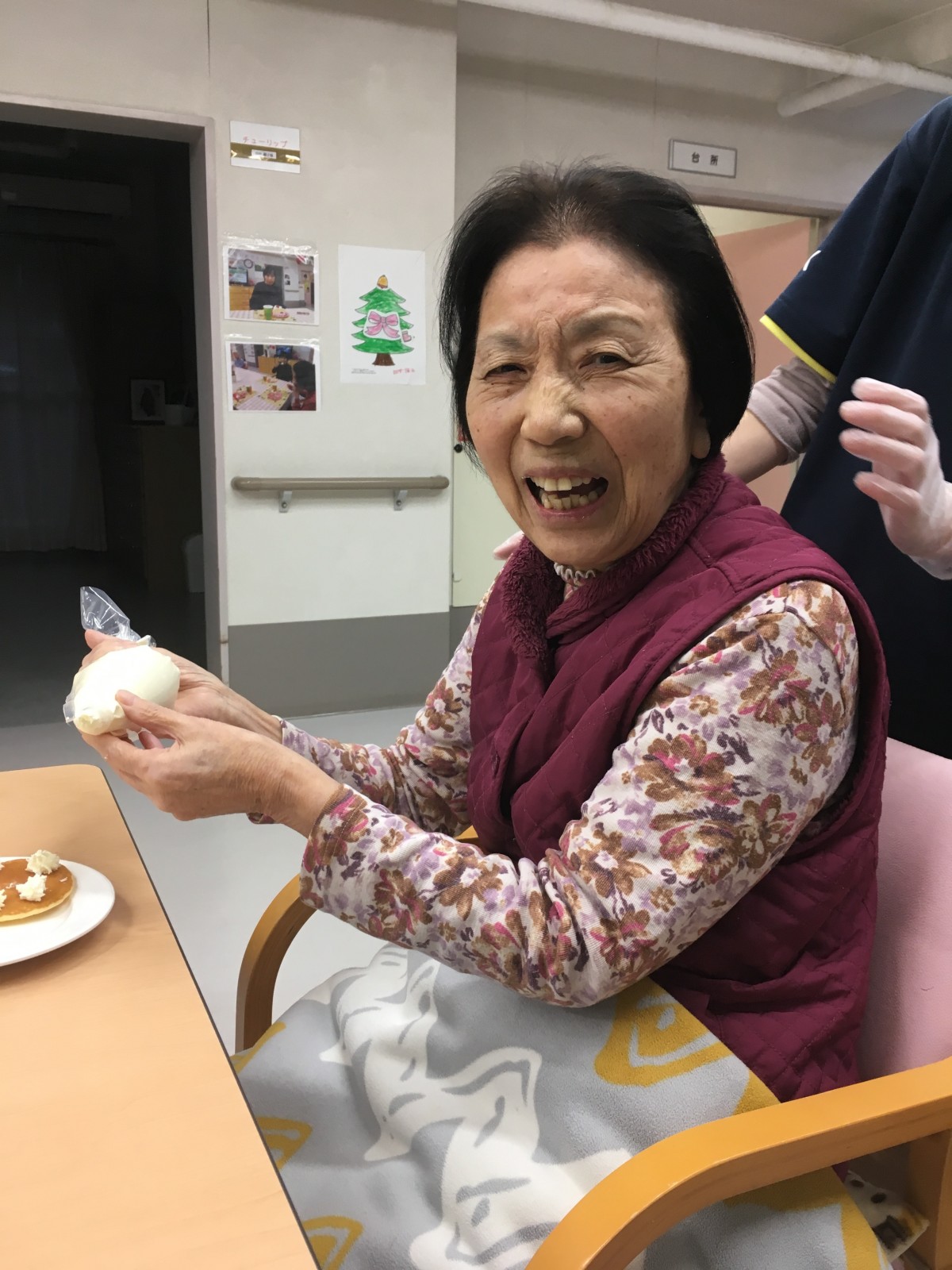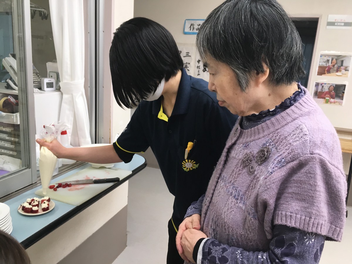 下準備中のスタッフの手際を見て「なかなかやるじゃない」とご満悦な表情のご利用者様(笑)