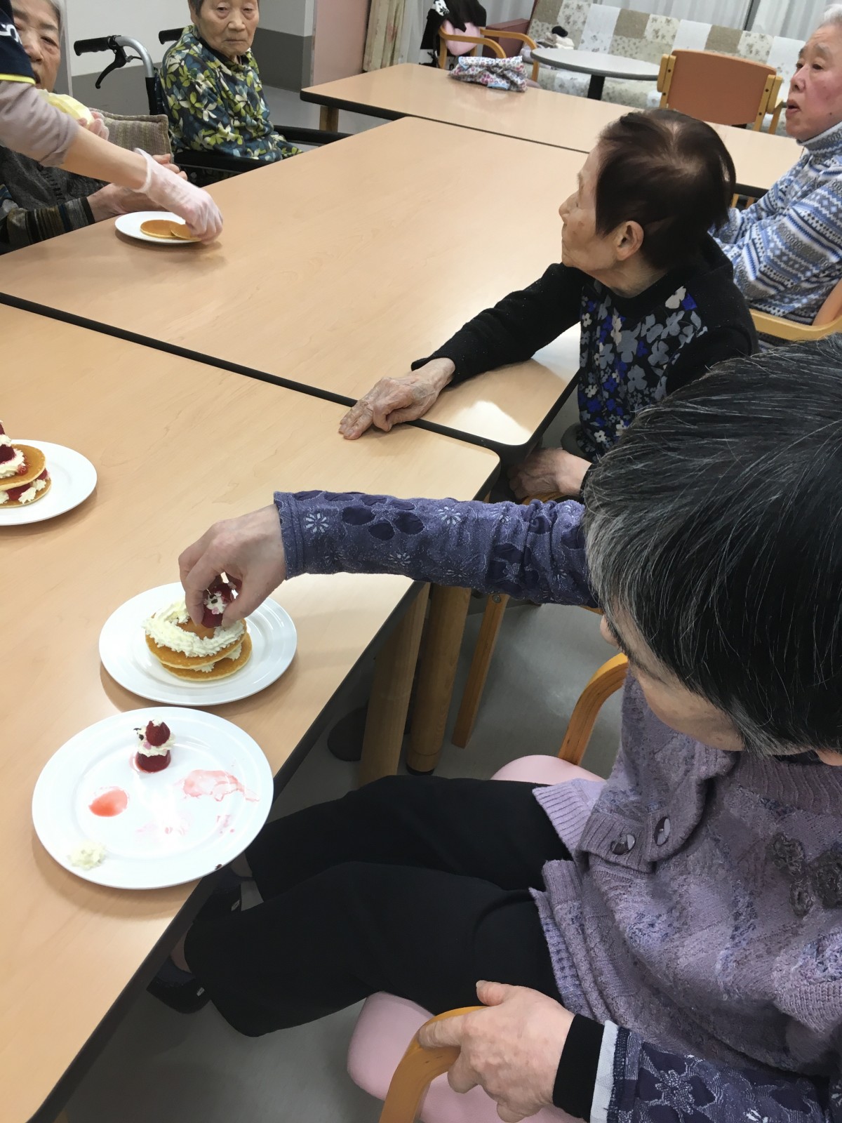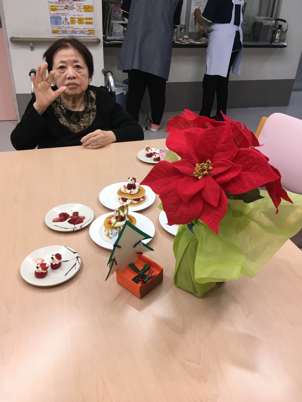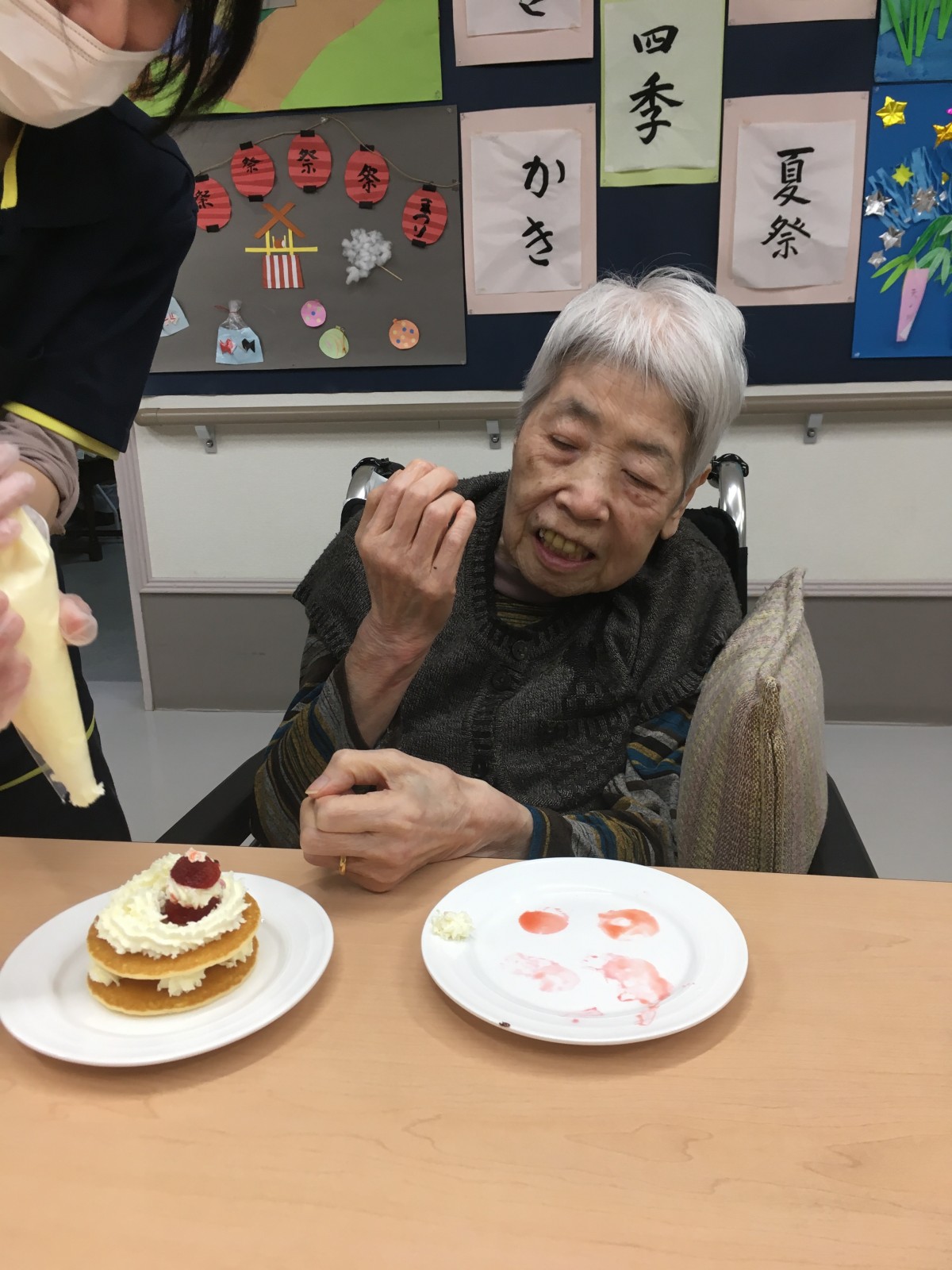 下準備中のスタッフの手際を見て「なかなかやるじゃない」とご満悦な表情のご利用者様(笑)