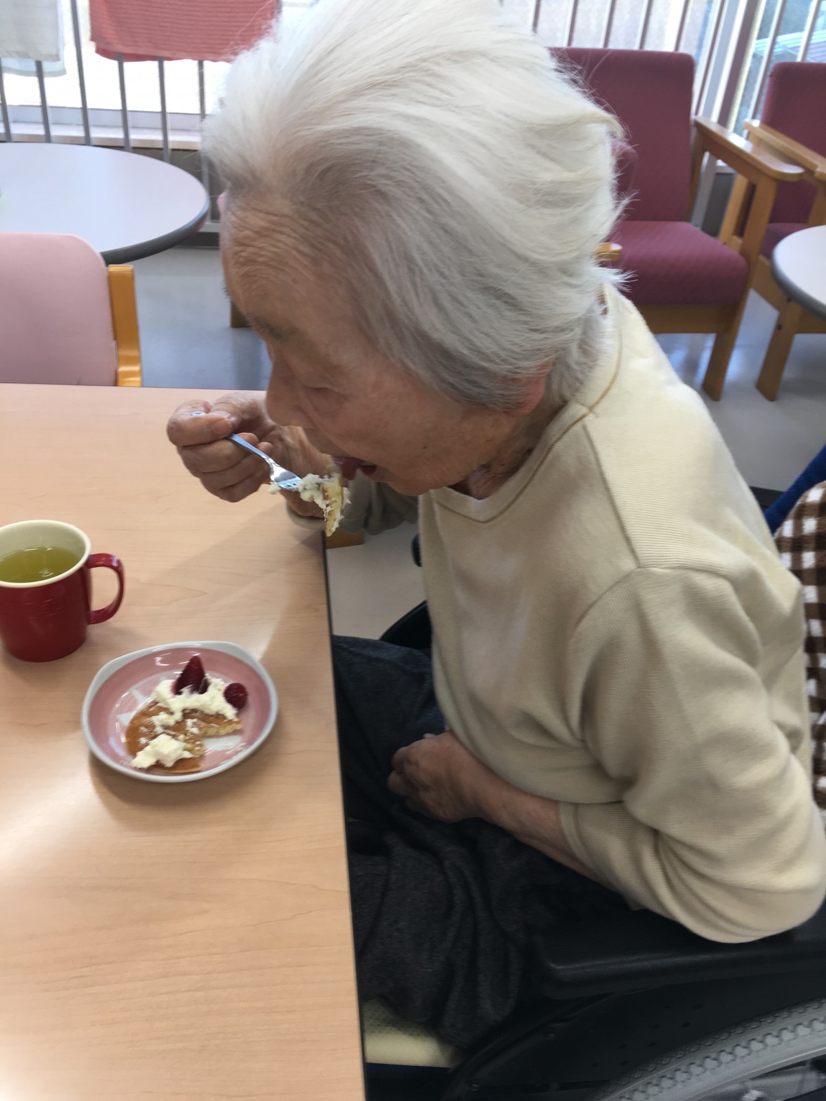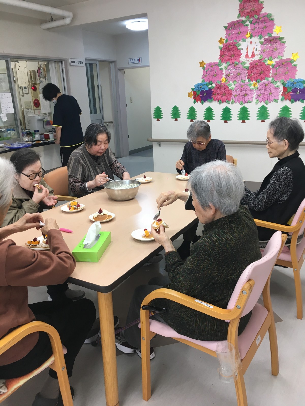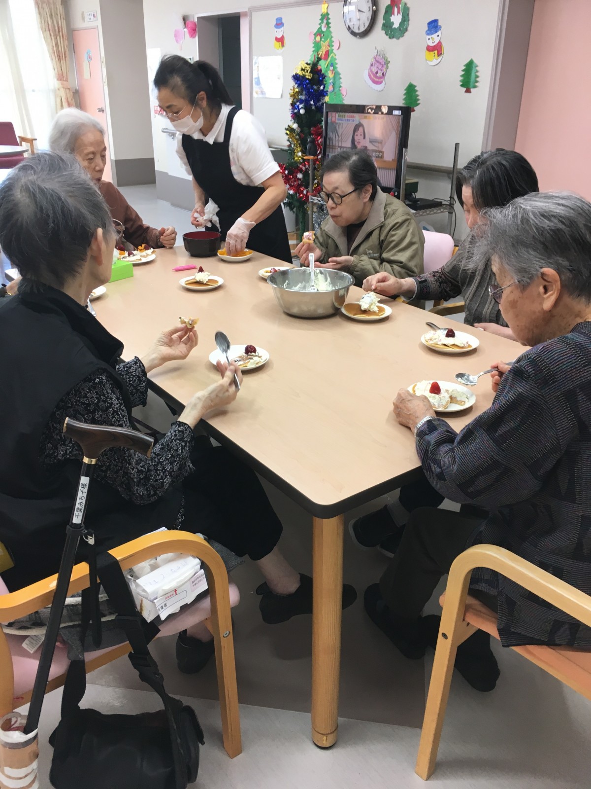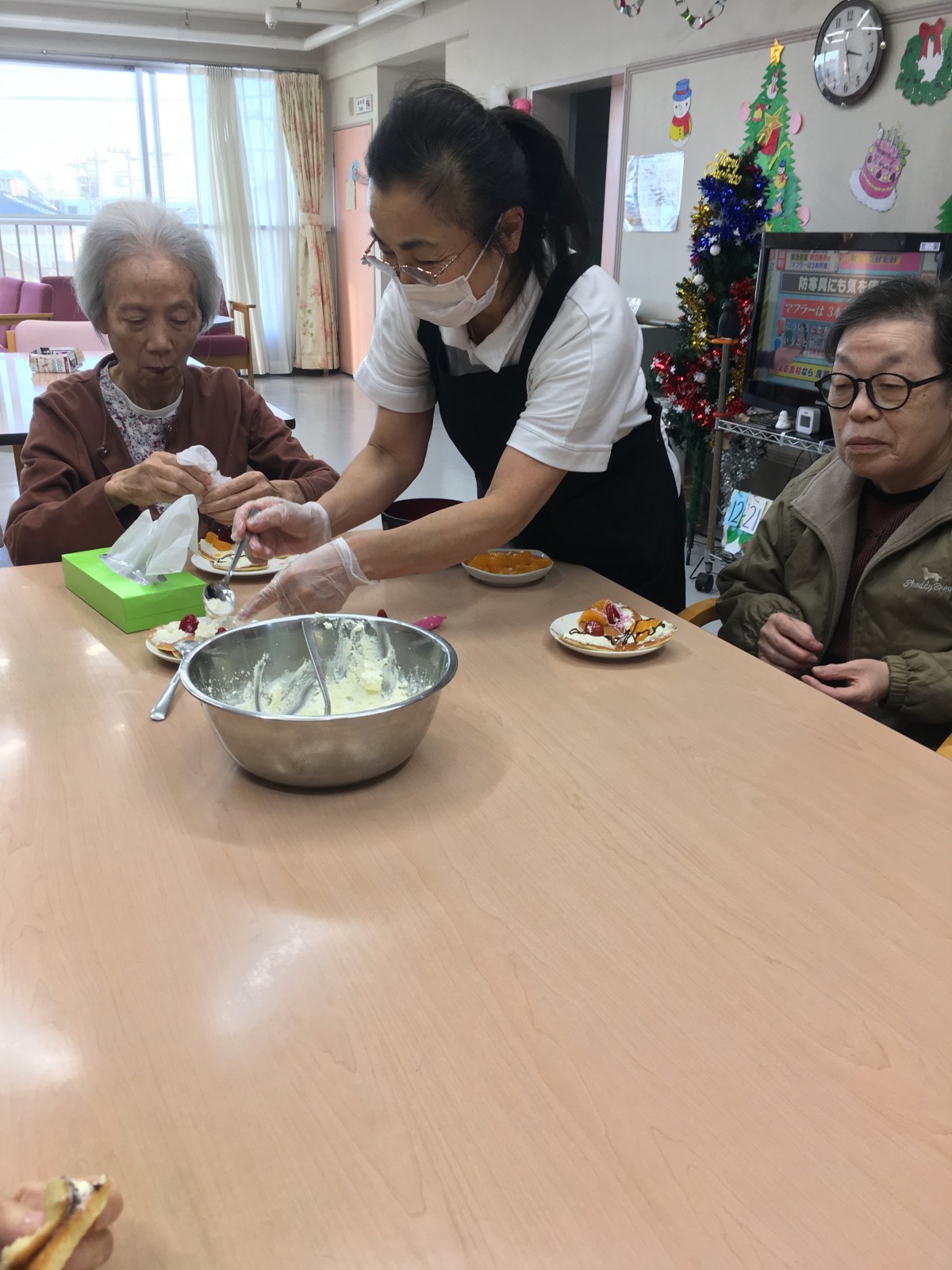 下準備中のスタッフの手際を見て「なかなかやるじゃない」とご満悦な表情のご利用者様(笑)