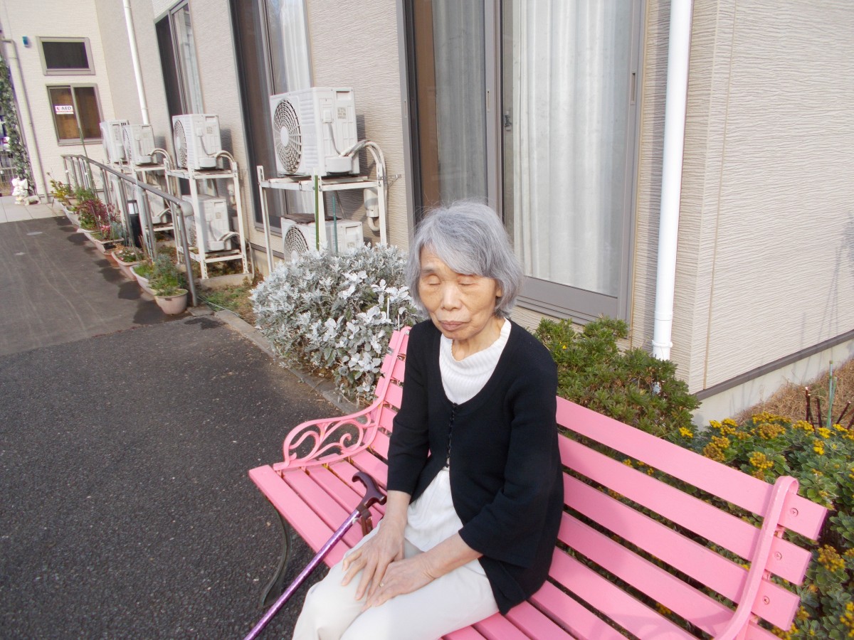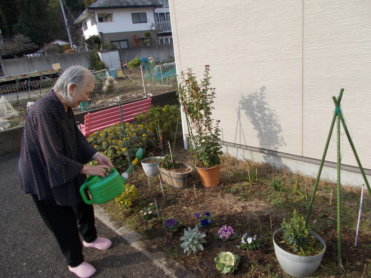 午後のお日様が当たる時間はちょっとだけ寒さが和らぐので外気浴をしたり、お花に水をあげています!