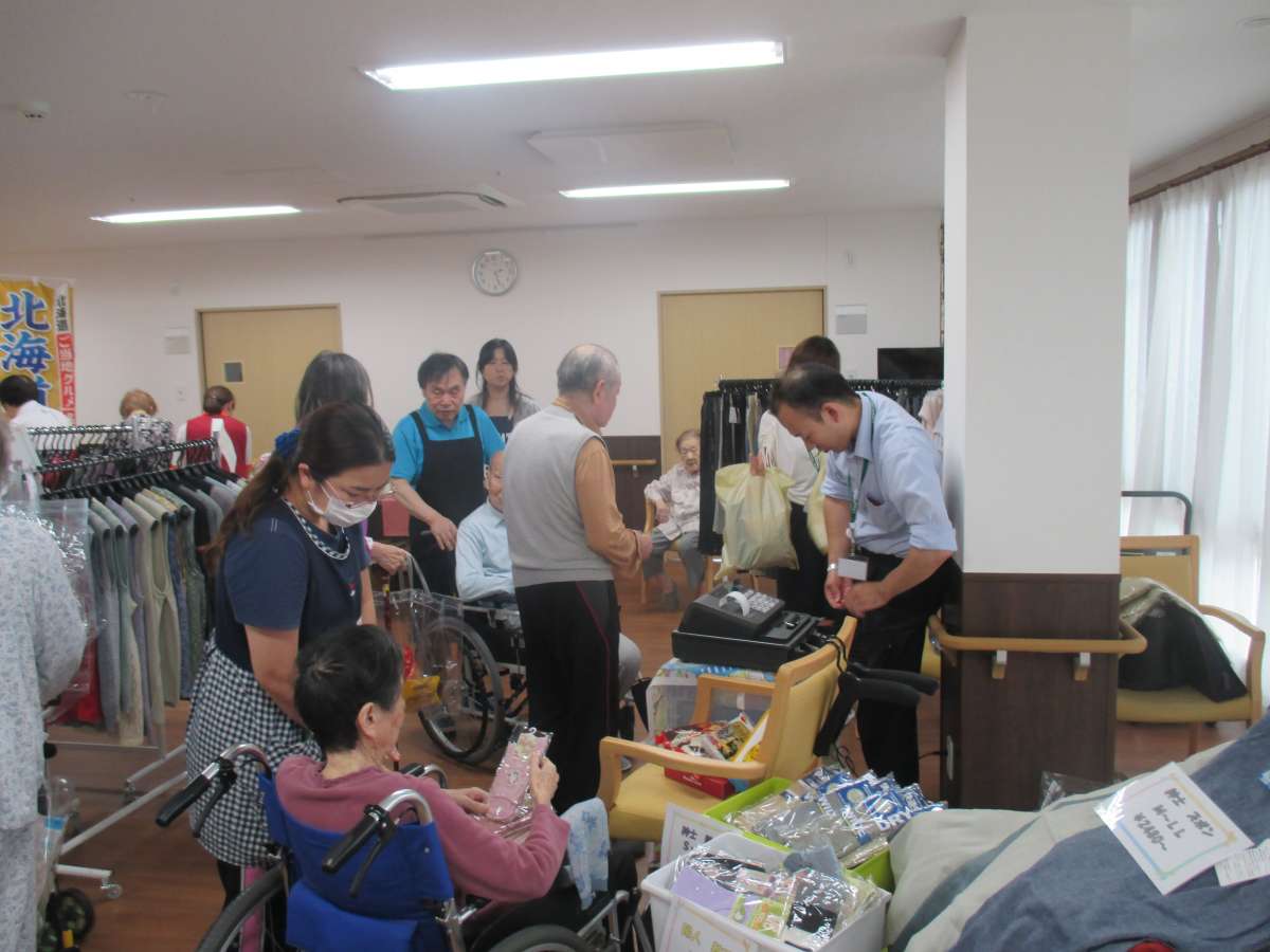 以前移動コンビニ販売でお菓子などを販売してくれた業者があったんですが、人員不足のため販売継続が困難となってしまい入居者様が自分でほしいお菓子や日常雑貨などを自分で見て購入することができなくなってしまい残念がっておりました…が、このたびこの閉塞した環境を打破すべく業者さんと打ち合わせの末、施設フロアを販売店のように品物を入れ外に出ることなくお買い物を楽しめるような企画を立てさせていただきました!