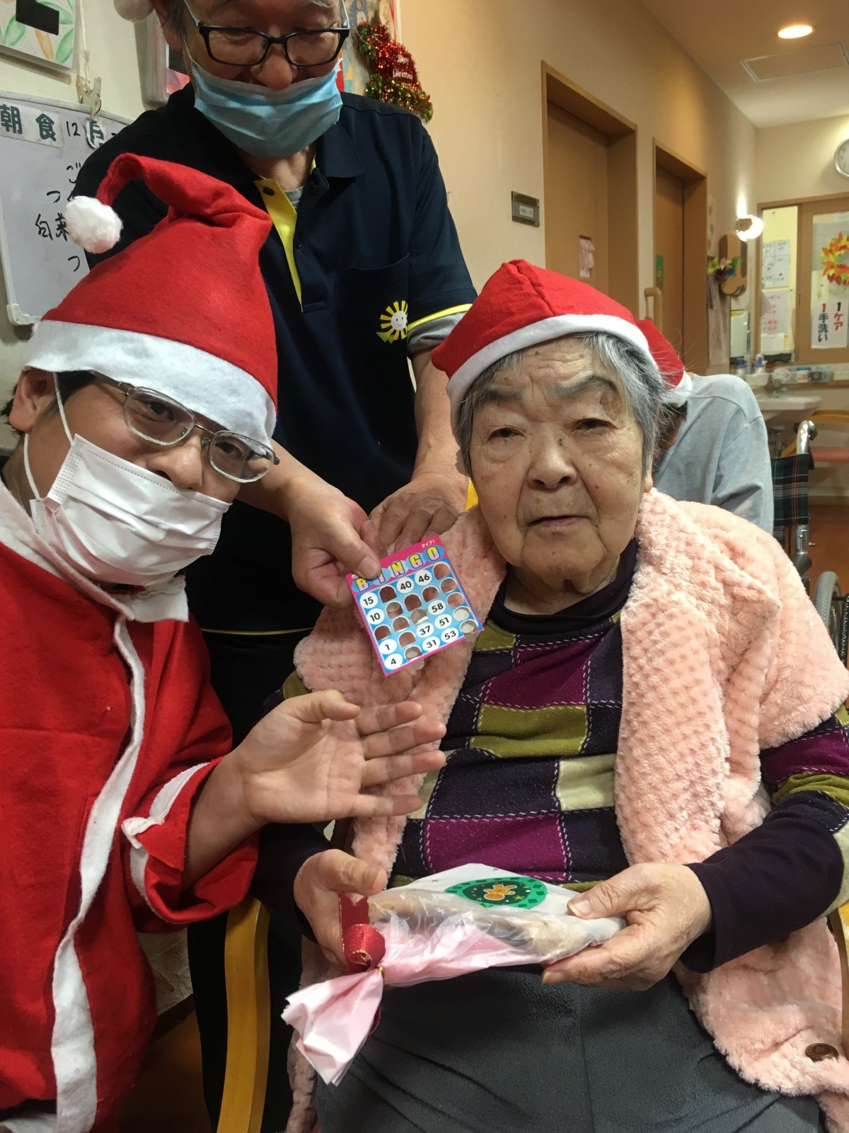 ビンゴになると、サンタさんからプレゼントをもらえます!!