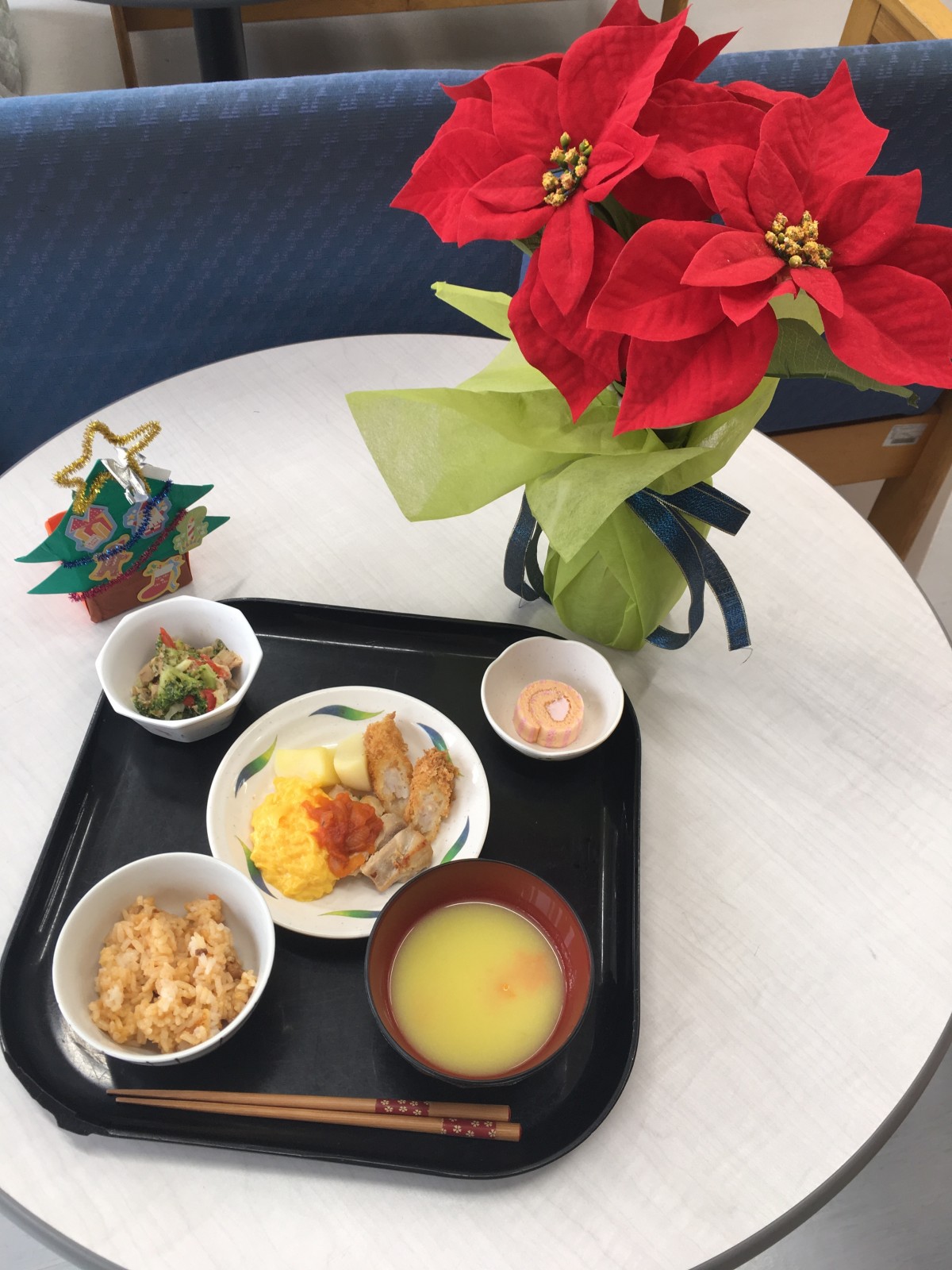 Xmasプレート(チキンライス・エビフライ・マッシュポテト・オムレツ)