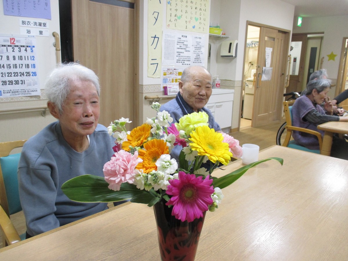 きれいなお花を頂いたのでご入居者様と一緒に撮影させていただきました❣