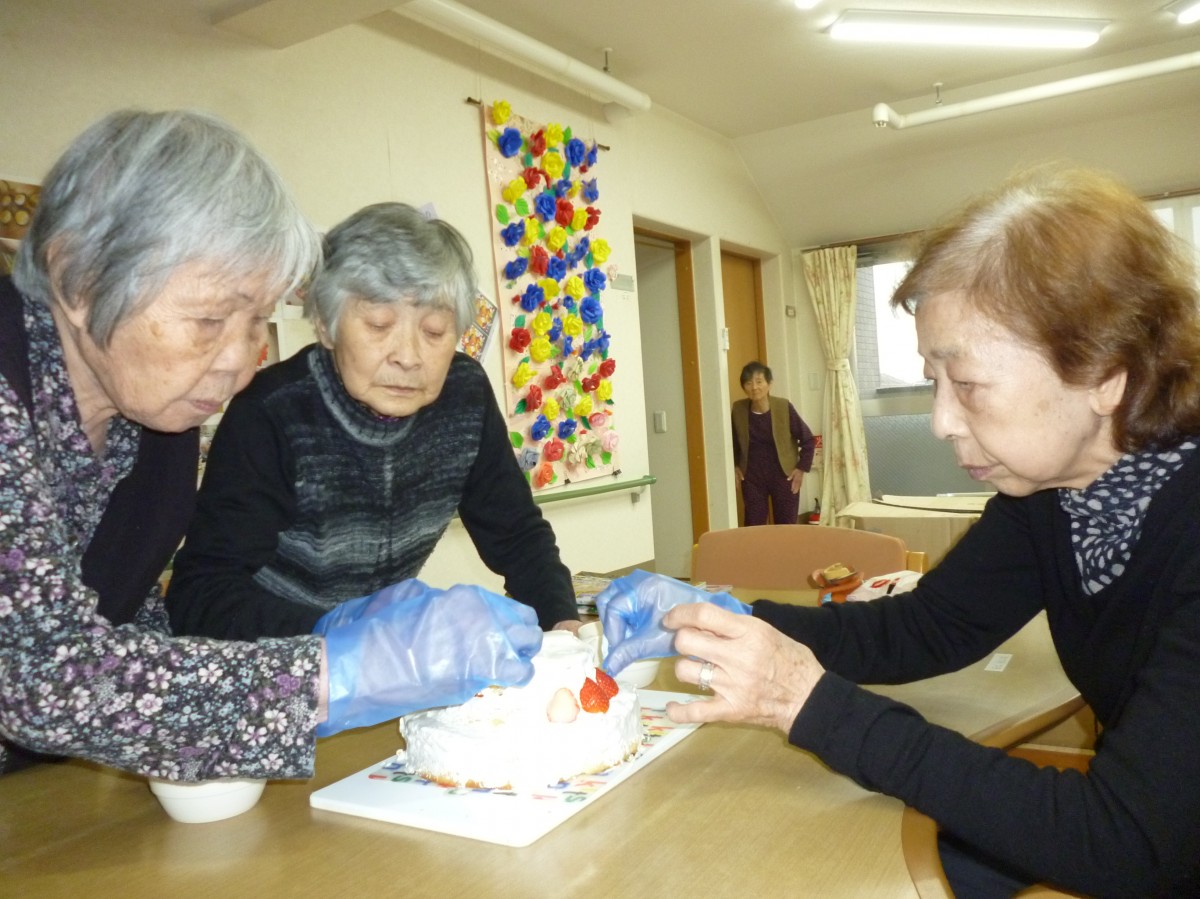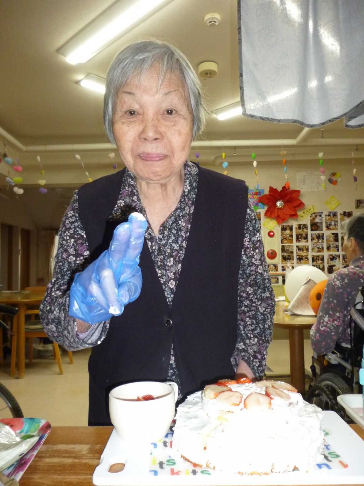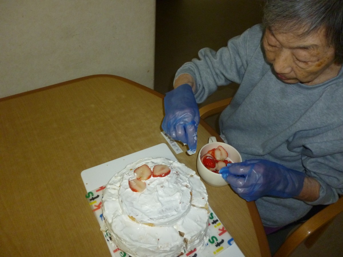入居者様にお手伝いして頂き豪華なケーキが完成しました(⋈◍>◡<◍)。✧♡