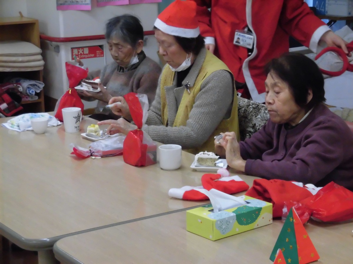 最後は皆様にクリスマスプレゼントをお配りし、おやつにケーキをご用意して皆様と美味しく召し上がりました!